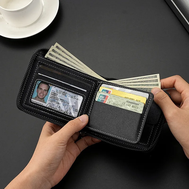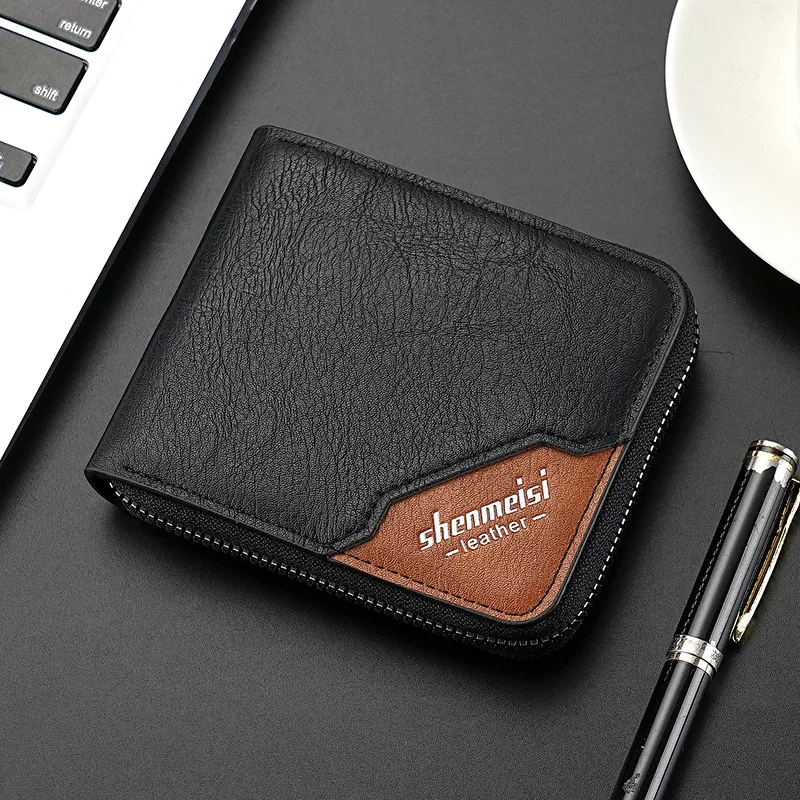 New Men's Wallet Fashion Retro Large Capacity Wallet Zipper Bag Coin Purse Men's Short Chain Wallet