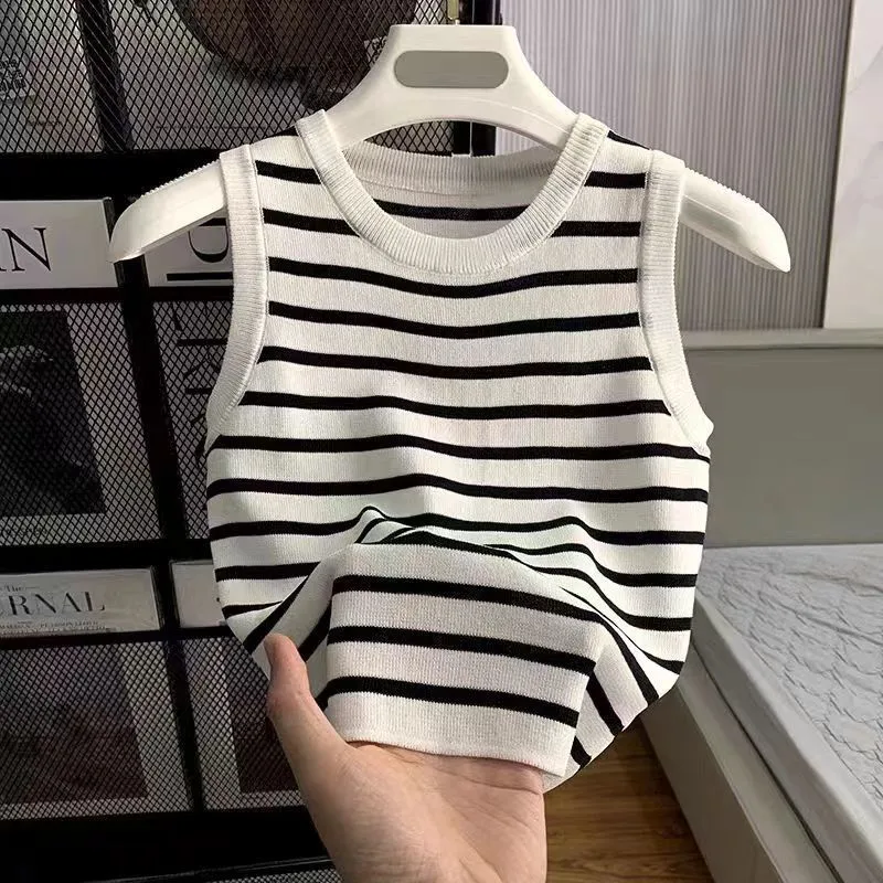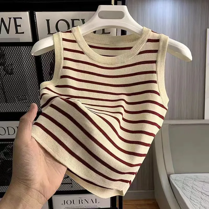 New Slim-Fit Striped Knit Camisole For Women, Sweet And Spicy Niche Outerwear And Inner Base Shirt Top Trendy