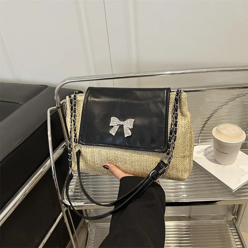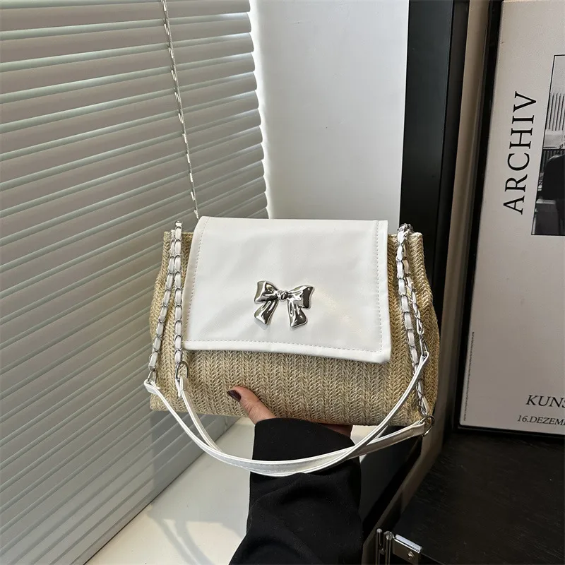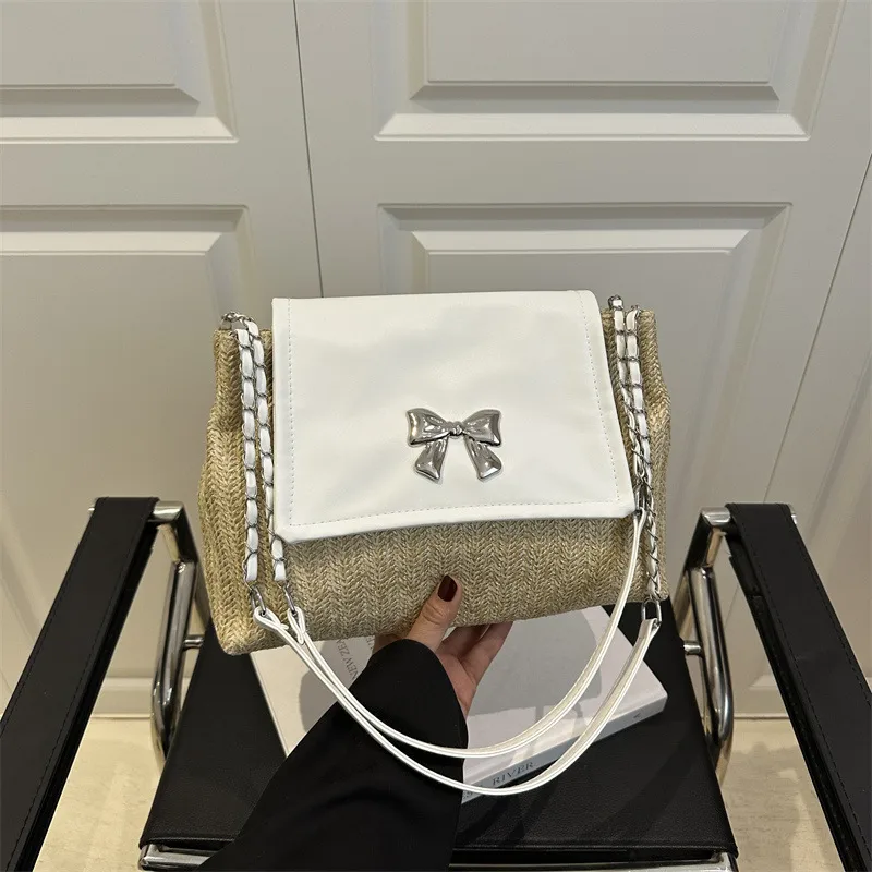 Wholesale New Style Fashionable Simple Large-Capacity Bag for Women Spring and Summer New Bow Armpit Bag Trendy Woven Shoulder Bag