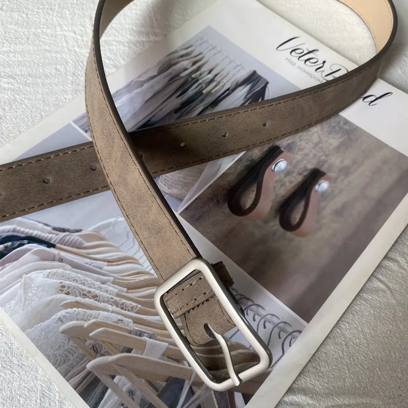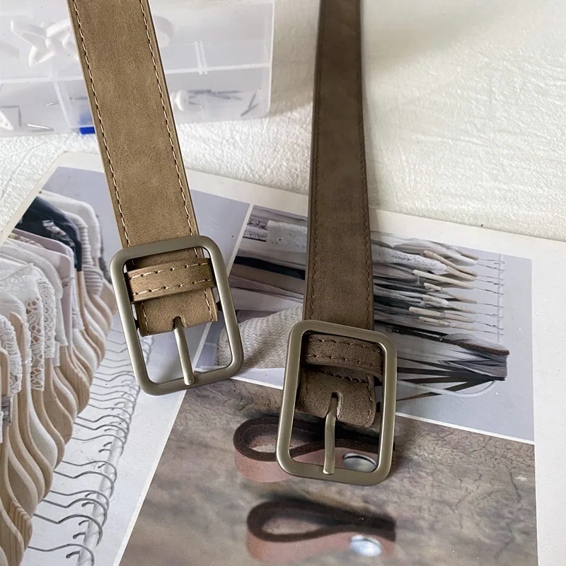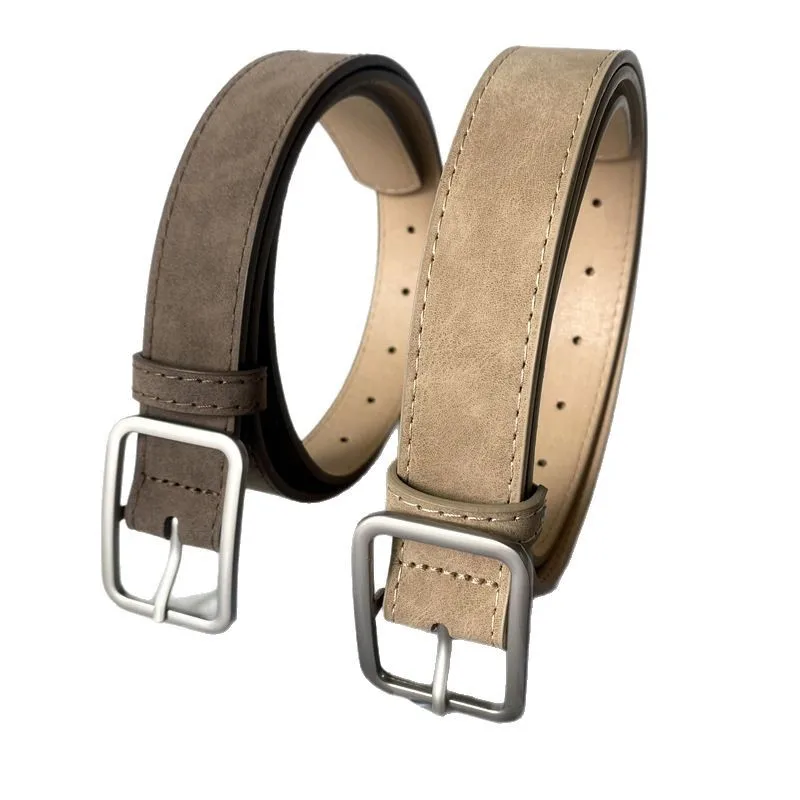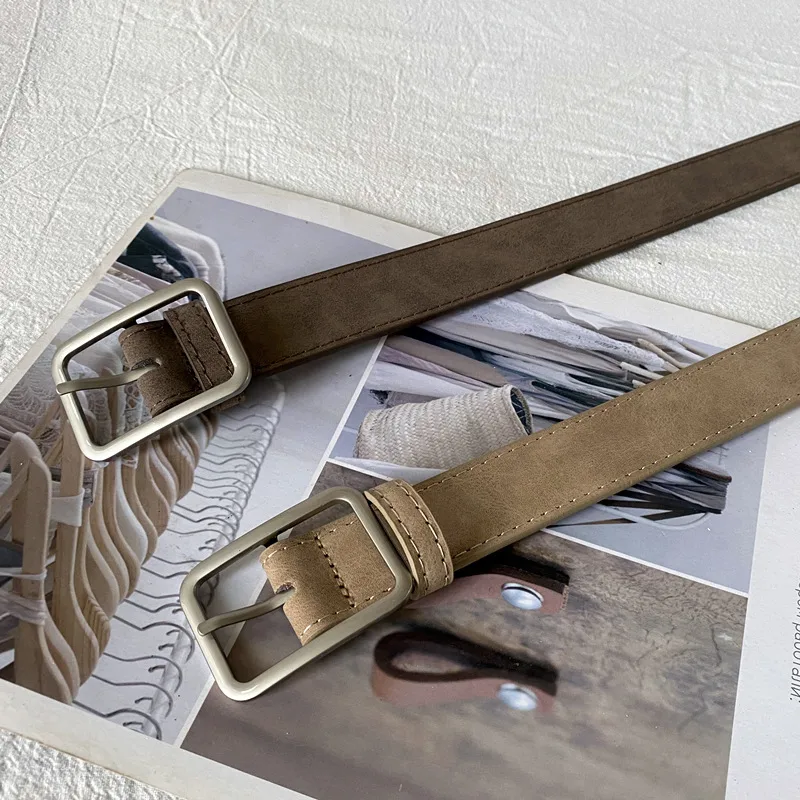New Style New Style Ins Dark And Light Nude Jeans Belt Square Buckle Suede Fashion Belt Frosted Leather Vintage Student