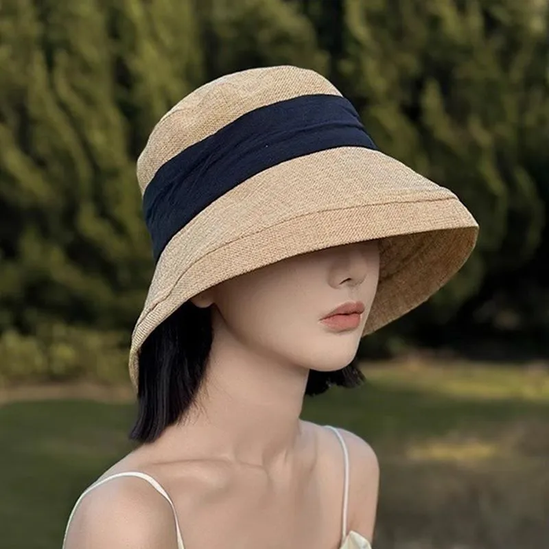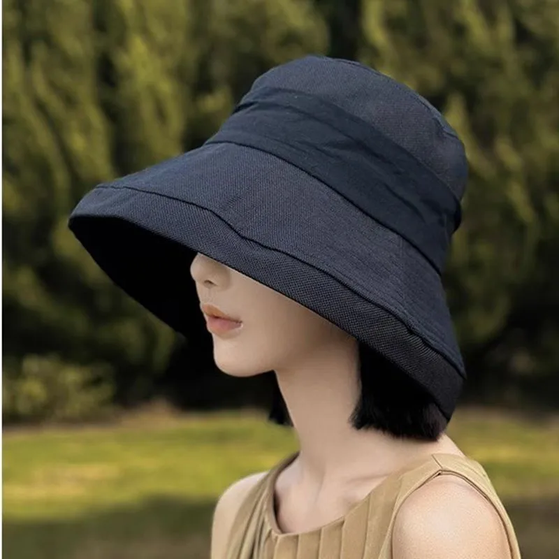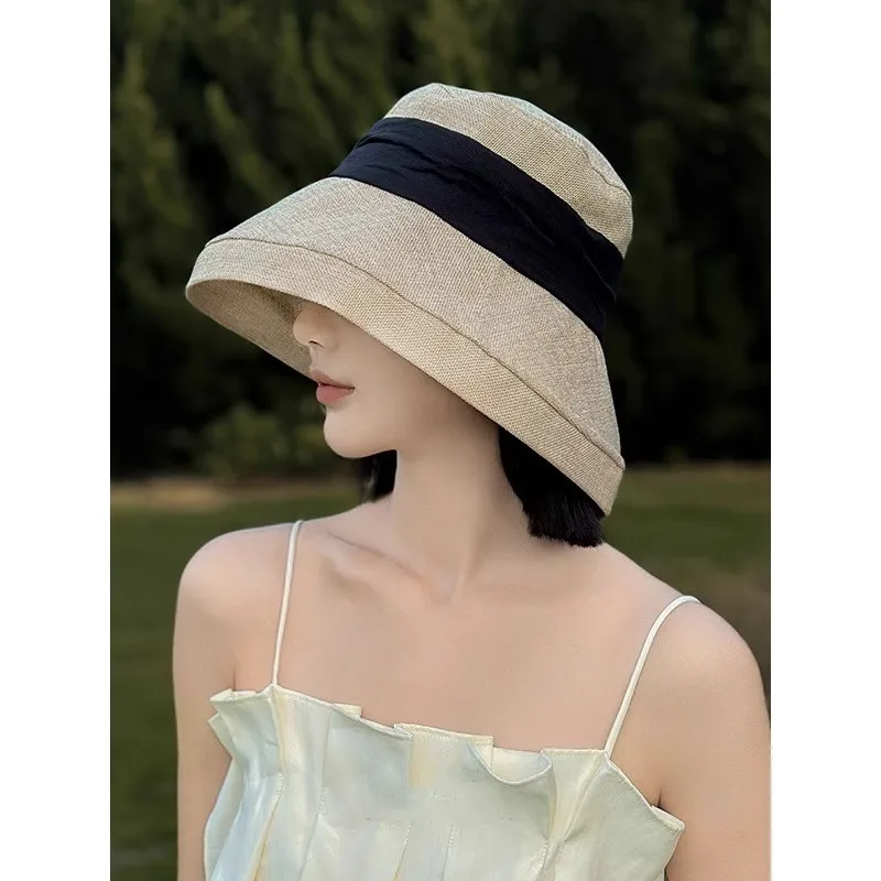 New-Style Simple Solid Color Cotton And Linen Bucket Hat For Women, Spring And Summer Casual Versatile Face-Covering Sun Hat