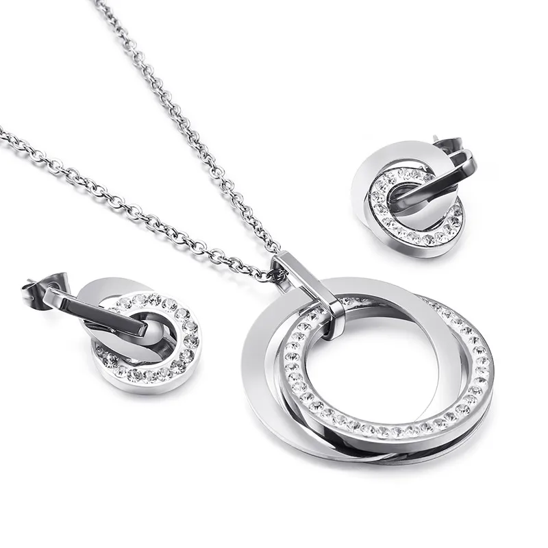 New Style Stainless Steel Jewelry Wholesale Double Ring Interlocking Diamond Jewelry Wholesale
