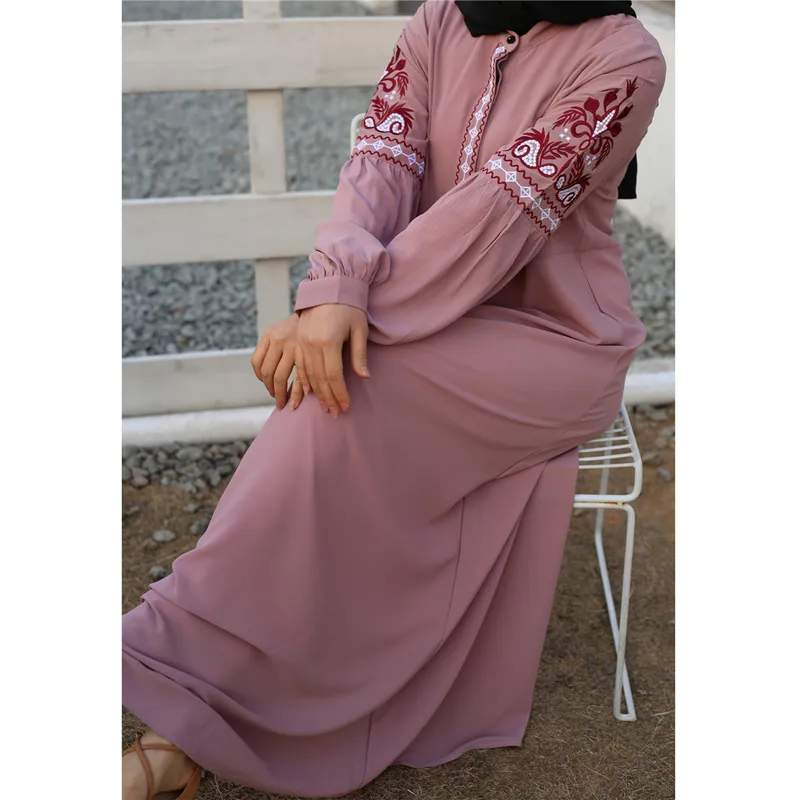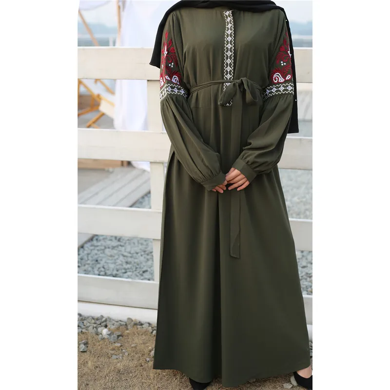 Wholesale New Stylish Long Sleeve Chiffon Embroidered Casual Abaya Dress 6267