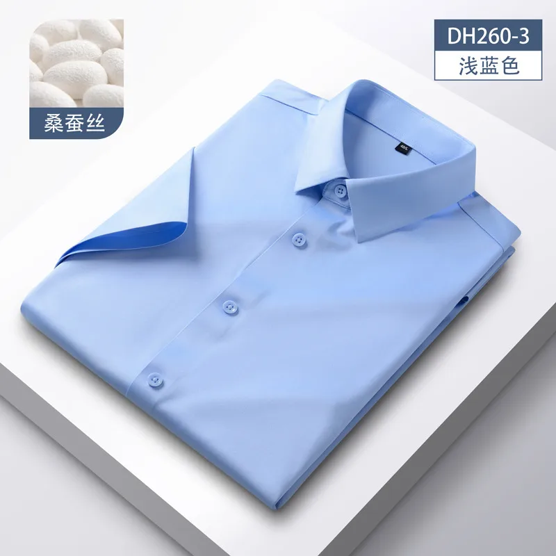 Wholesale New Summer Men's Short Sleeve Mulberry Silk Shirt - Business Casual Wrinkle-Resistant Stretch Fabric