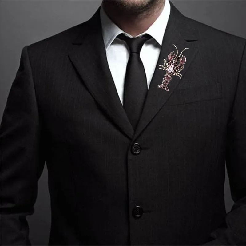 Wholesale novelty lobster alloy plating inlay artificial gemstones unisex brooches