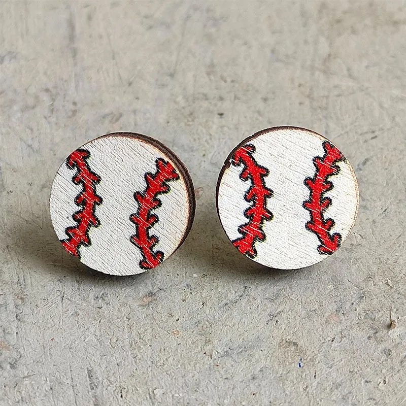 Original Design Basketball Football Wood Women's Ear Studs 1 Pair