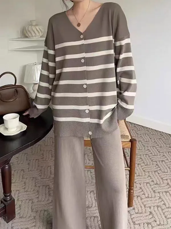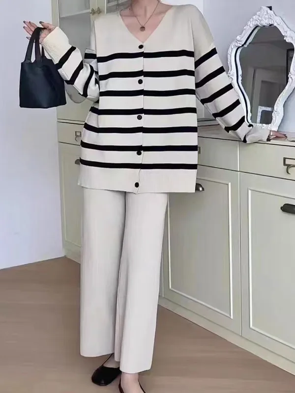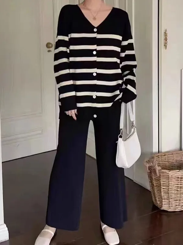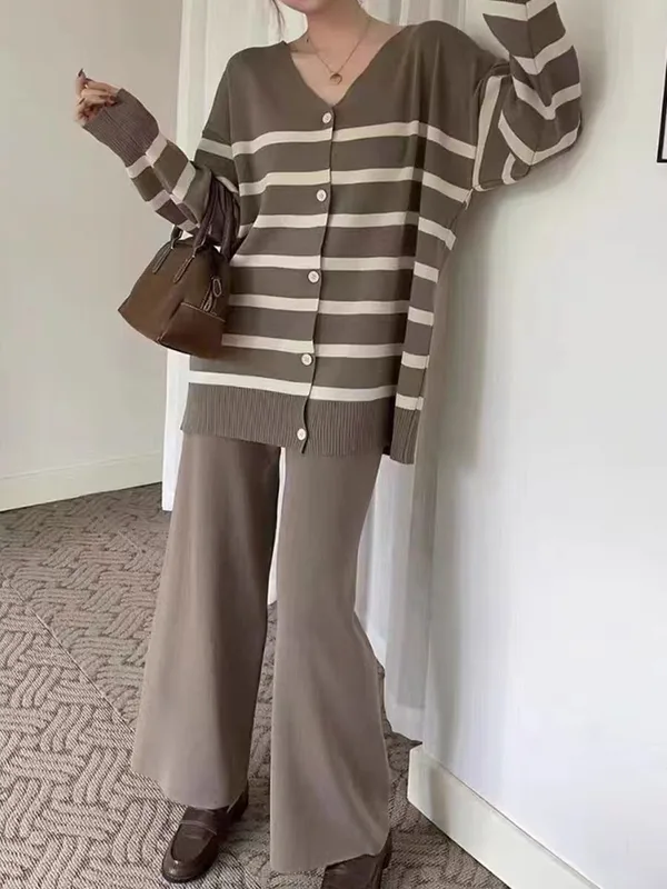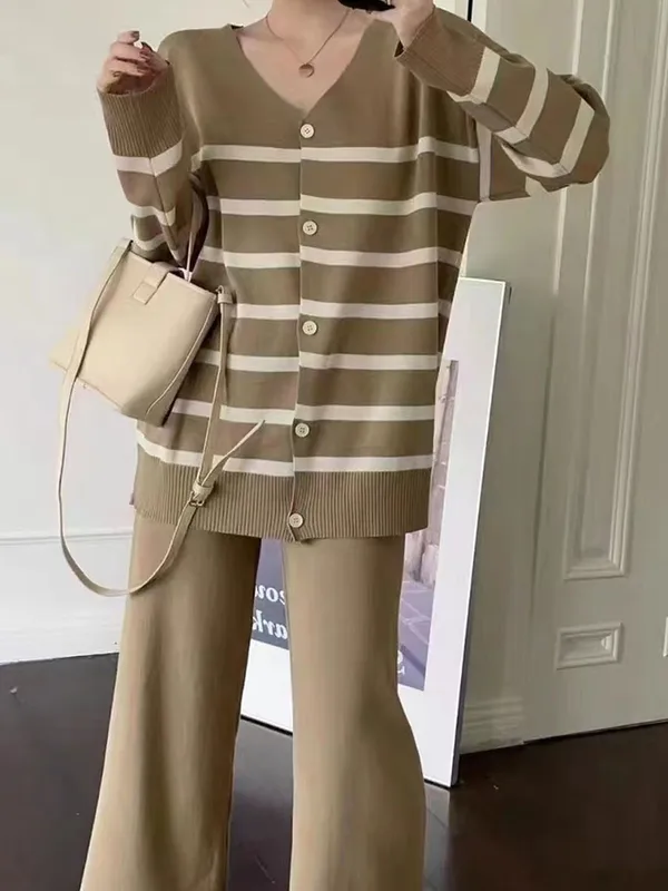 Outdoor Women's Casual Vintage Style Stripe Polyester Pants Sets Pants Sets