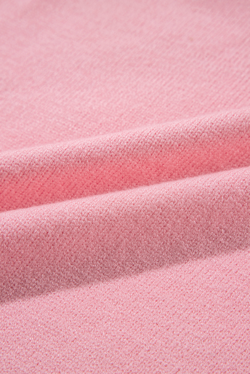 Peach Blossom Flower Detail Knitted Notched Neck Sweater