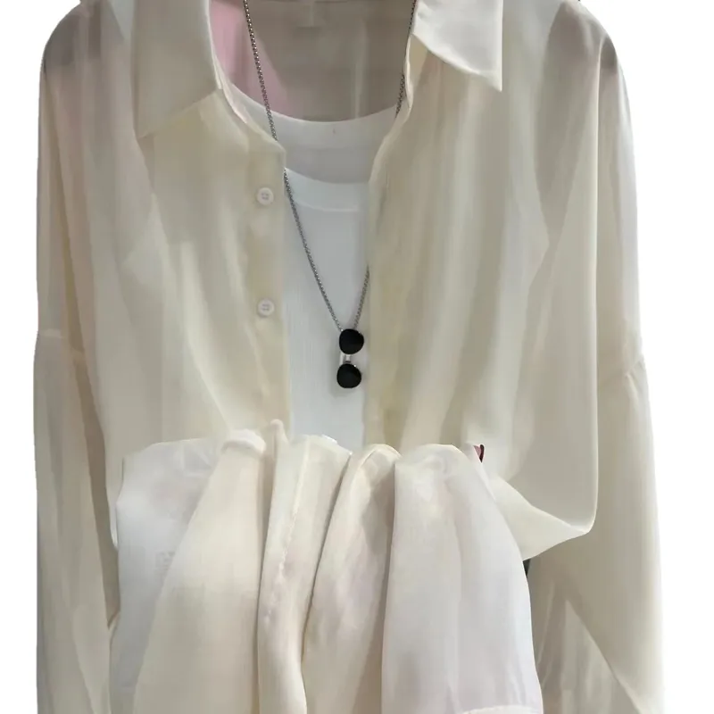Pearlescent Shirt Women's Summer Design Sense Thin Micro-transparent Long-sleeve Chic Casual Loose Shirt