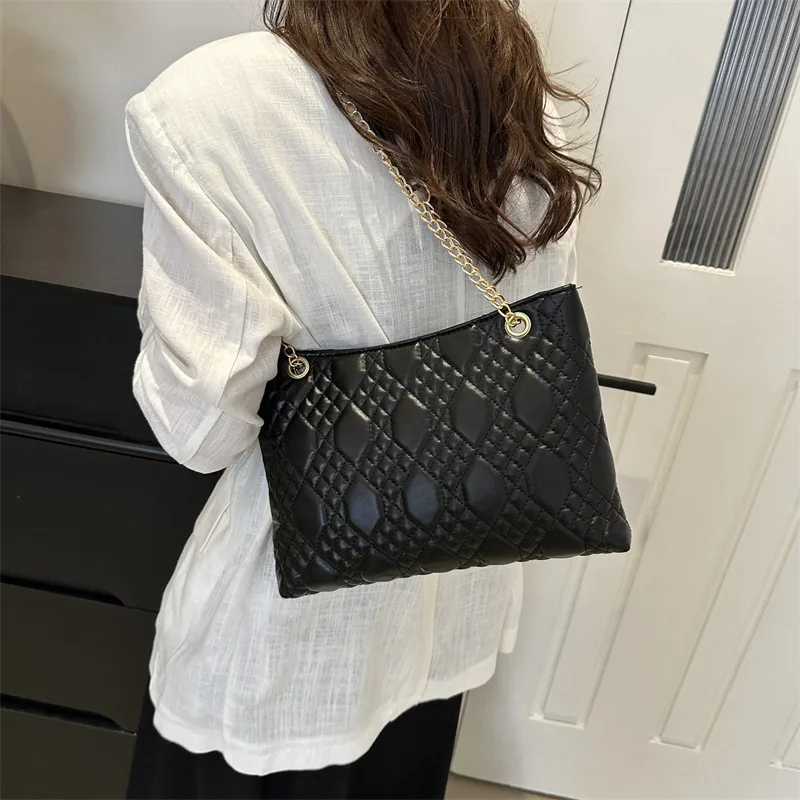 Wholesale Personalized Creative Embroidery Line Small Square Bag Textured PU Shoulder Bag Korean Fashionable Women's Bag Niche Underarm Bag