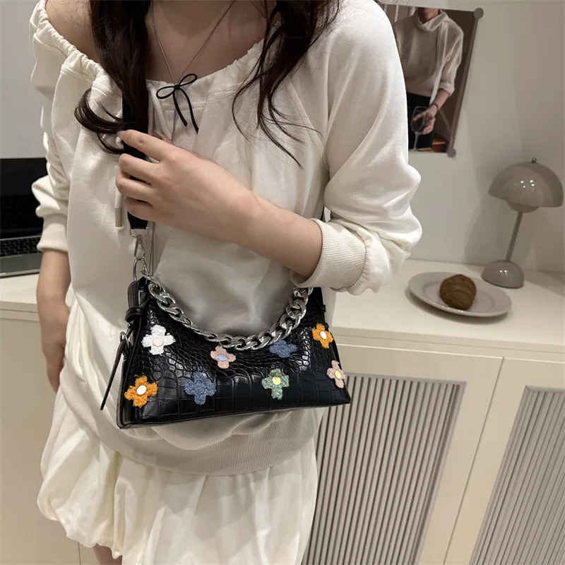 Wholesale Personalized Design Flower Women's Summer New Fashionable Solid Color Chain Large Capacity Shoulder Underarm Bag
