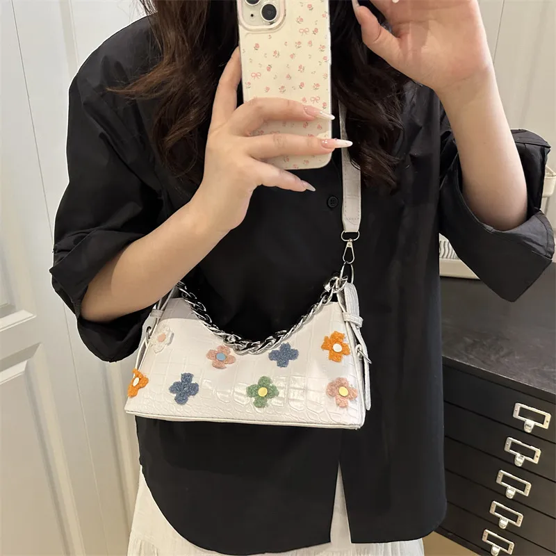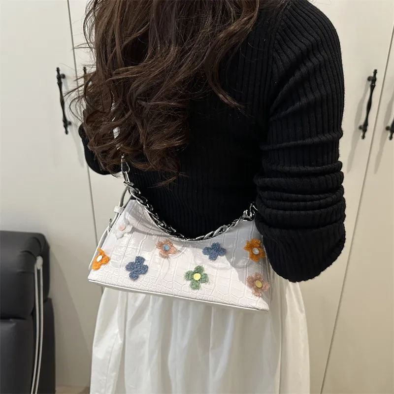 Personalized Design Flower Women's Summer New Fashionable Solid Color Chain Large Capacity Shoulder Underarm Bag