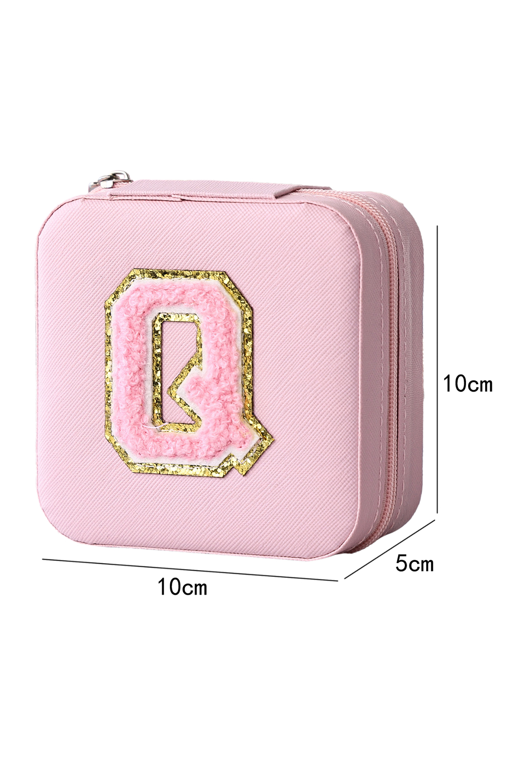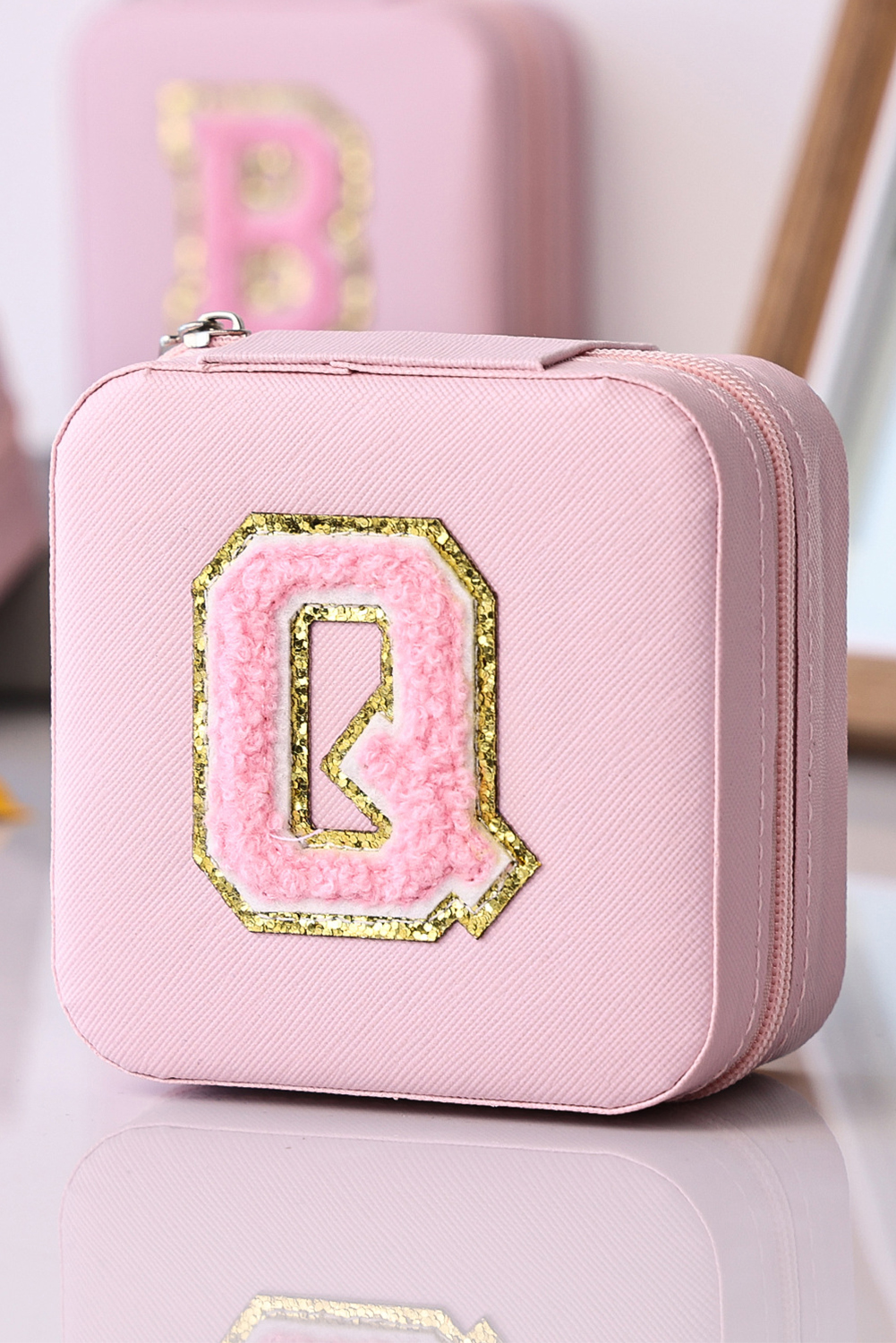 Pink Q Chenille Patch Jewelry Box with Mirror