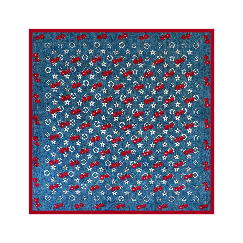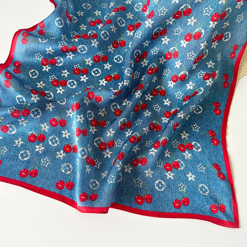 Plain Crepe Satin Silk Scarf, High-End Ethnic Style Small Cherry Square Scarf, Summer Retro Small Silk Scarf For Women