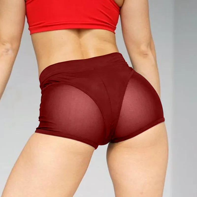Plus Size Hot Pants Sexy High Waist Mesh Stitching Tight Stretch Yoga Sports Shorts