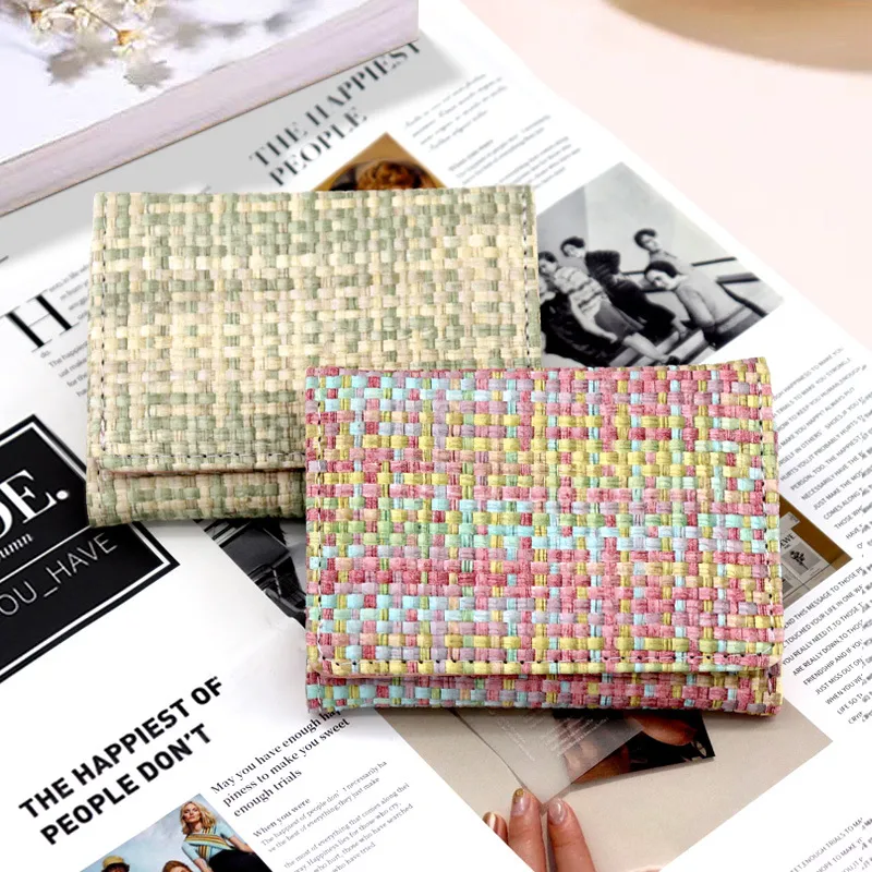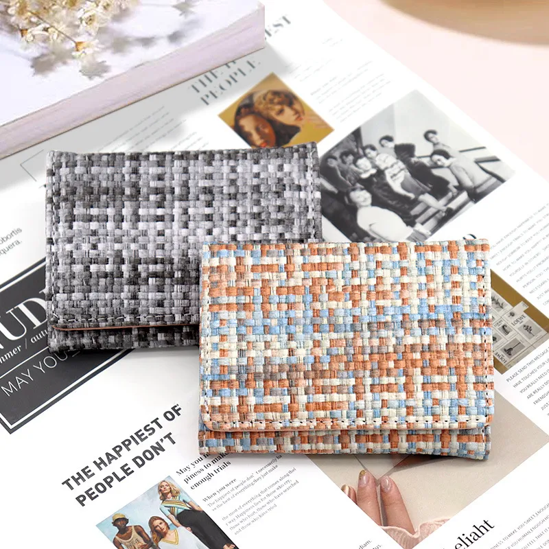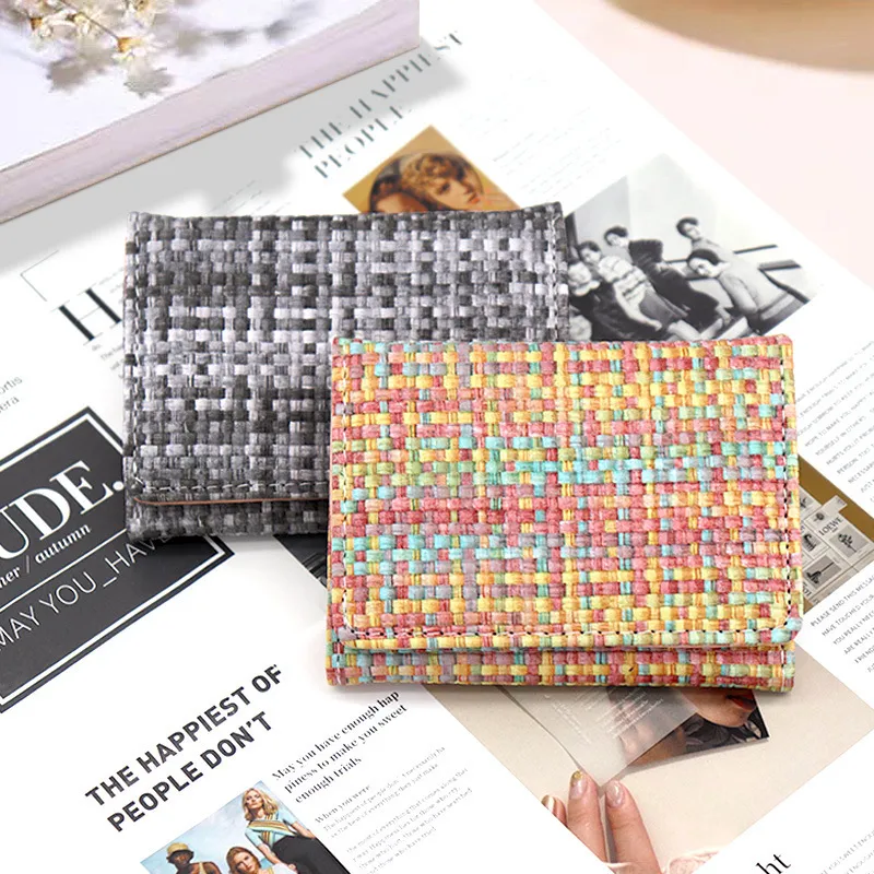 Wholesale Popular Folding Wallet Woven Pattern Card Bag Large Capacity Korean-style Student Three-fold Short Wallet Buckle Change