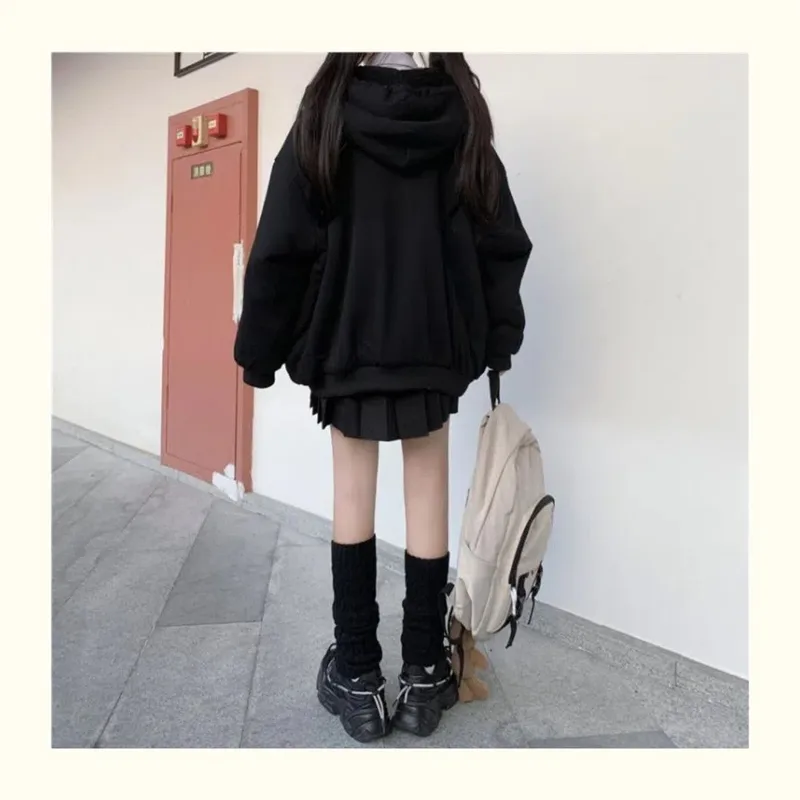Preppy Style Sweet Fresh Cardigan Autumn And Winter New Versatile Ins Cute Zipper Solid Color Hooded Coat For Women