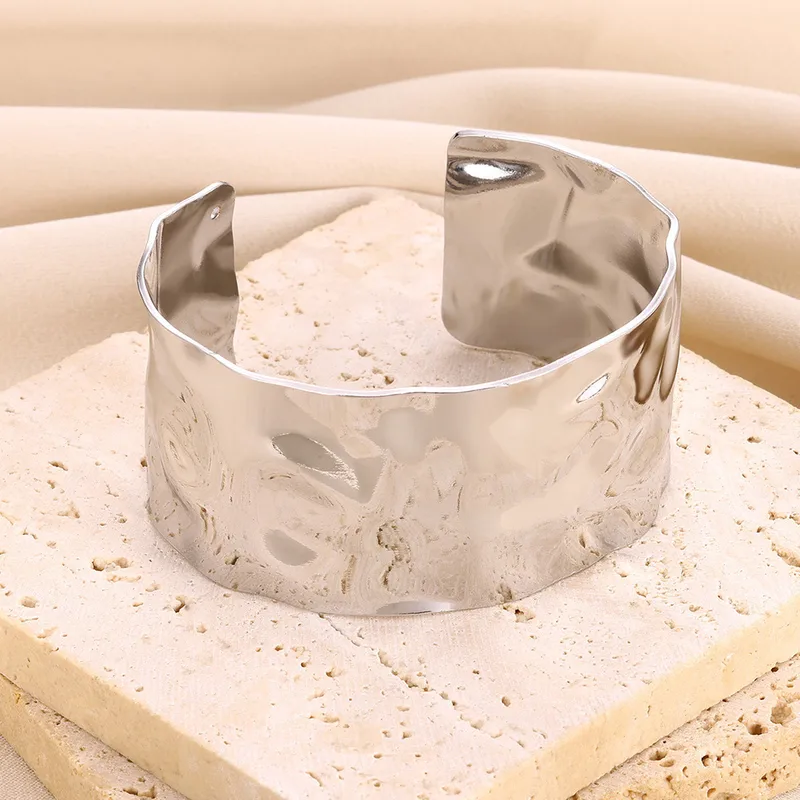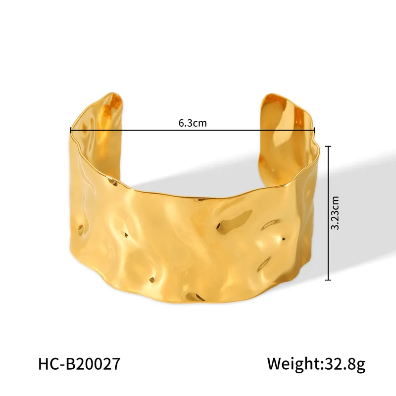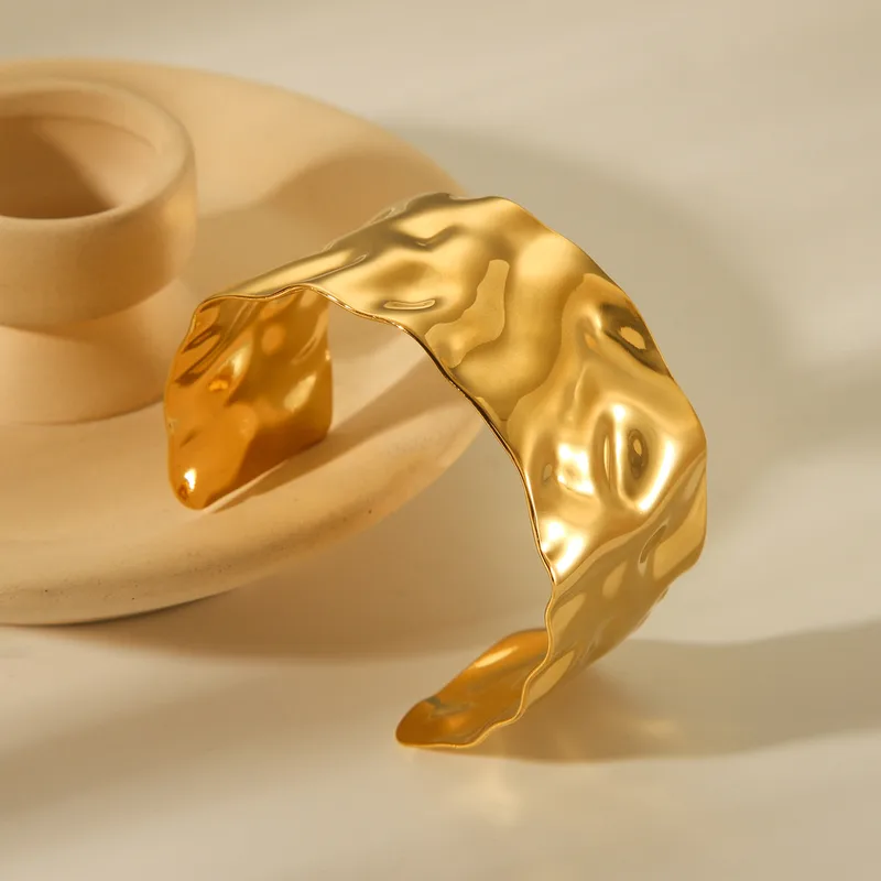 Wholesale Retro Classic Style Geometric Folds Alloy Asymmetrical 14K Gold Plated Women's Wide Bracelet
