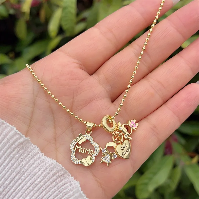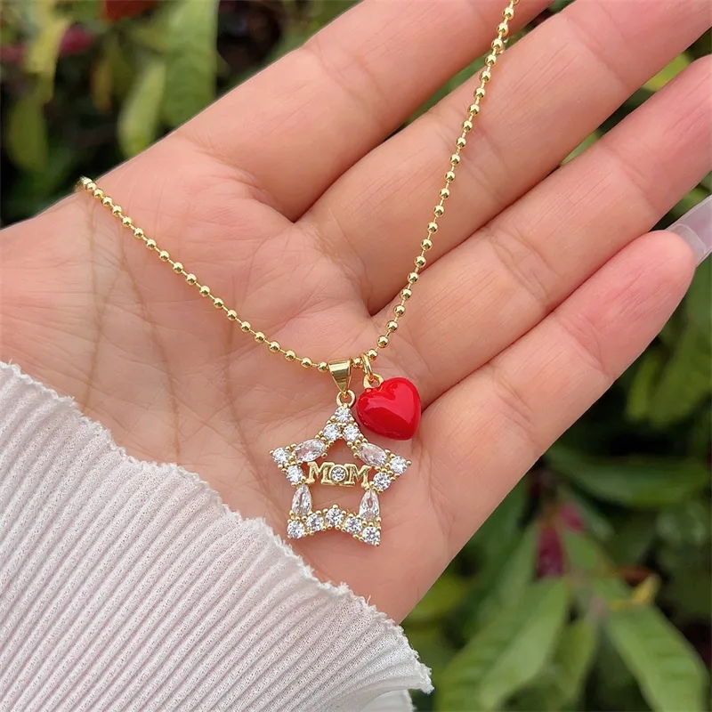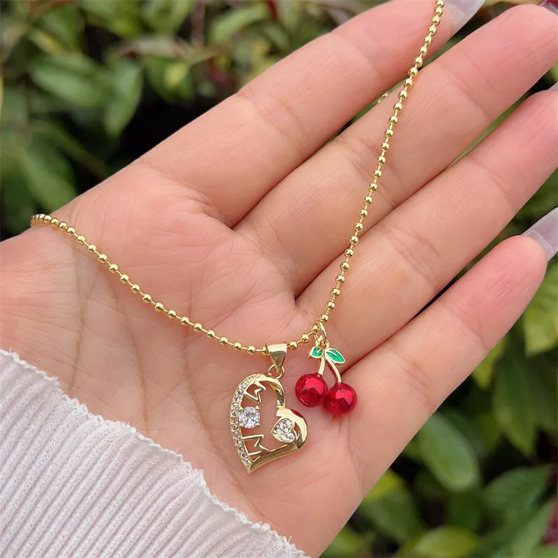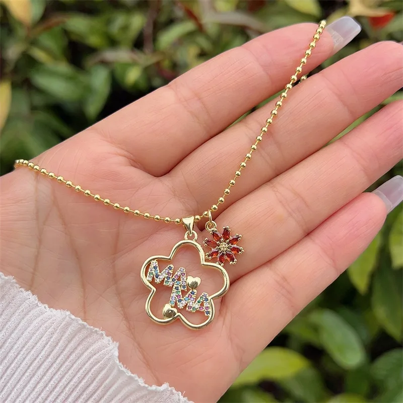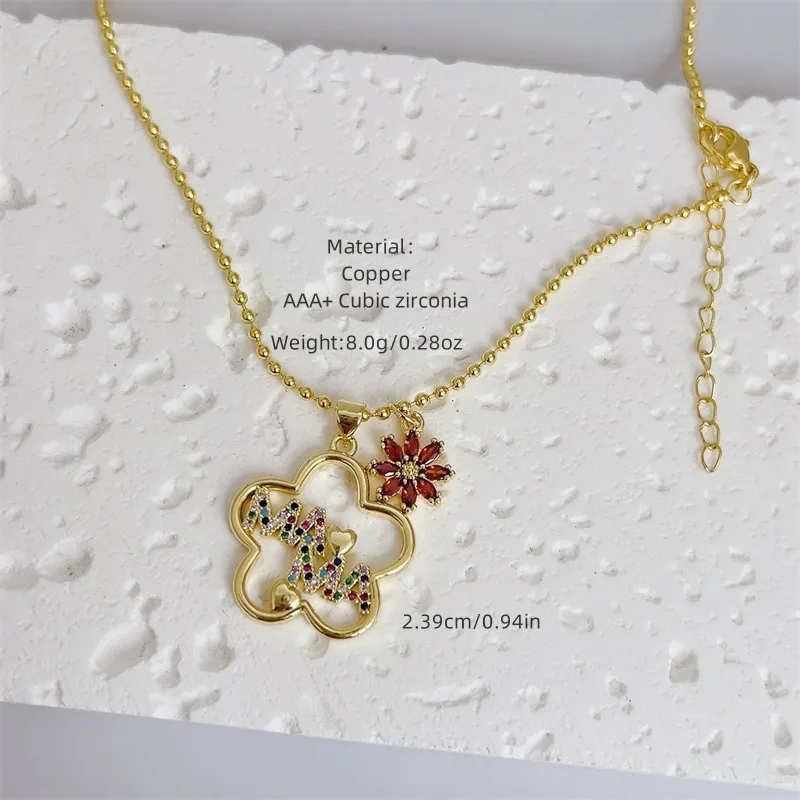 Retro Classic Style Heart Shape Flower Copper Inlay Zircon 18K Gold Plated Women's Pendant Necklace