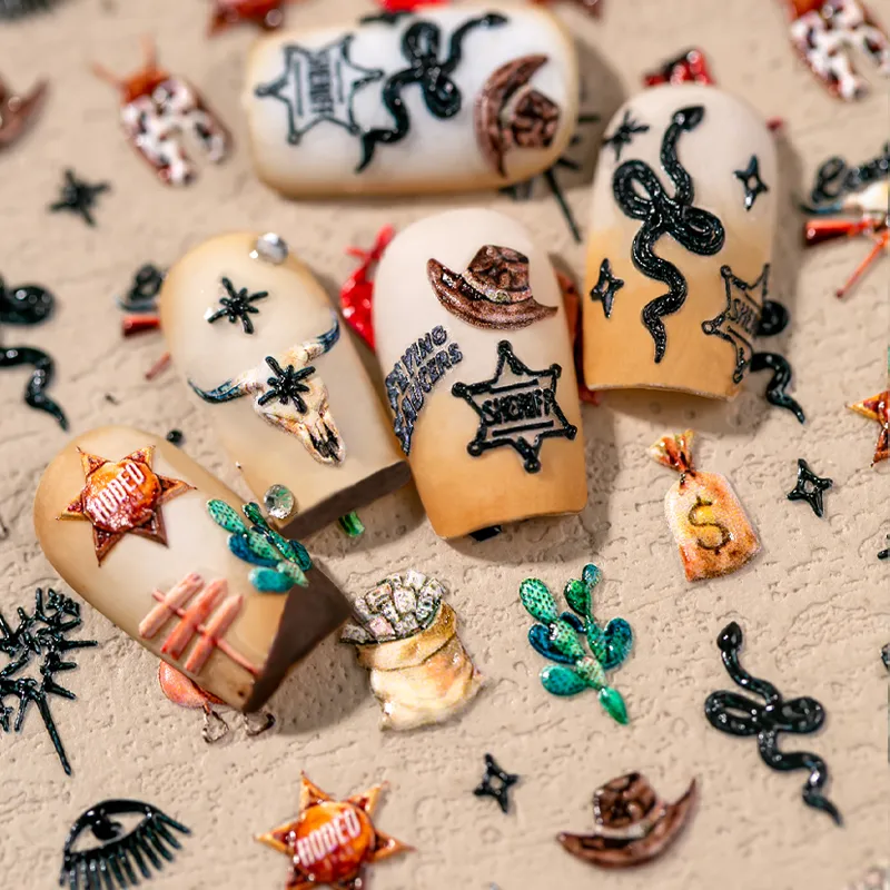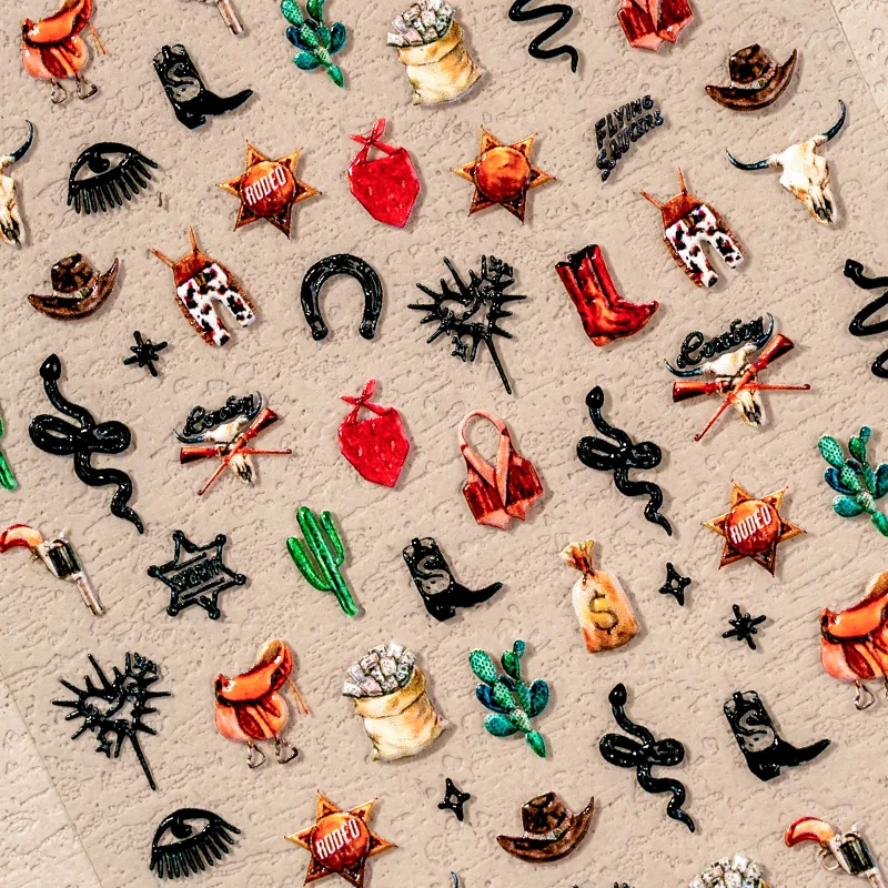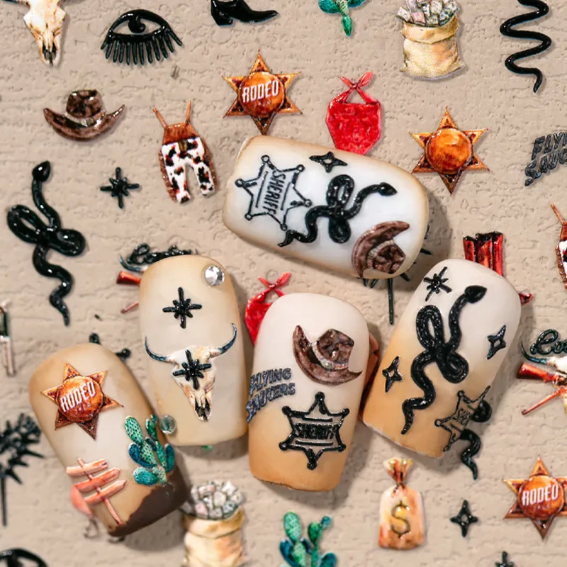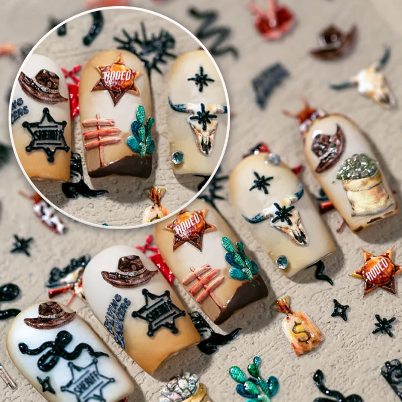 Wholesale Retro Cowboy Style Animal Nail Stickers Nail Decoration Accessories
