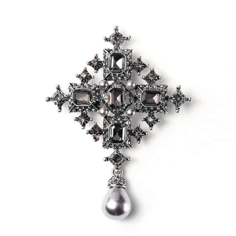 Wholesale retro cross alloy plating inlay rhinestones pearl women's brooches