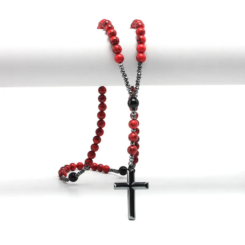 Wholesale retro cross natural stone agate men's long necklace 1 piece