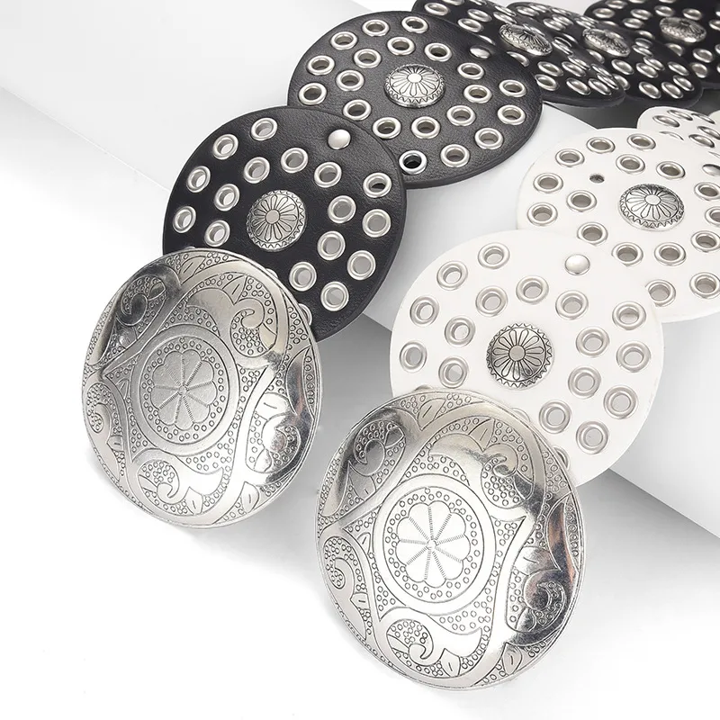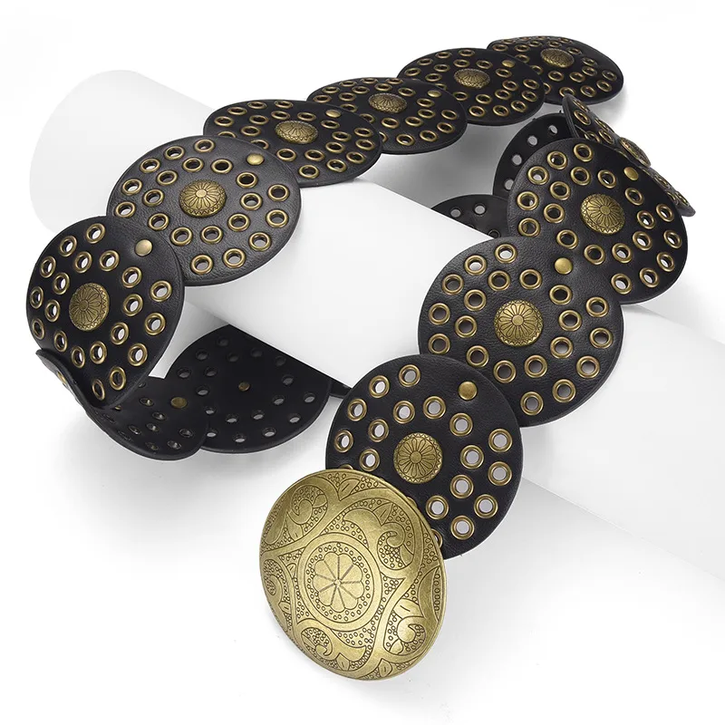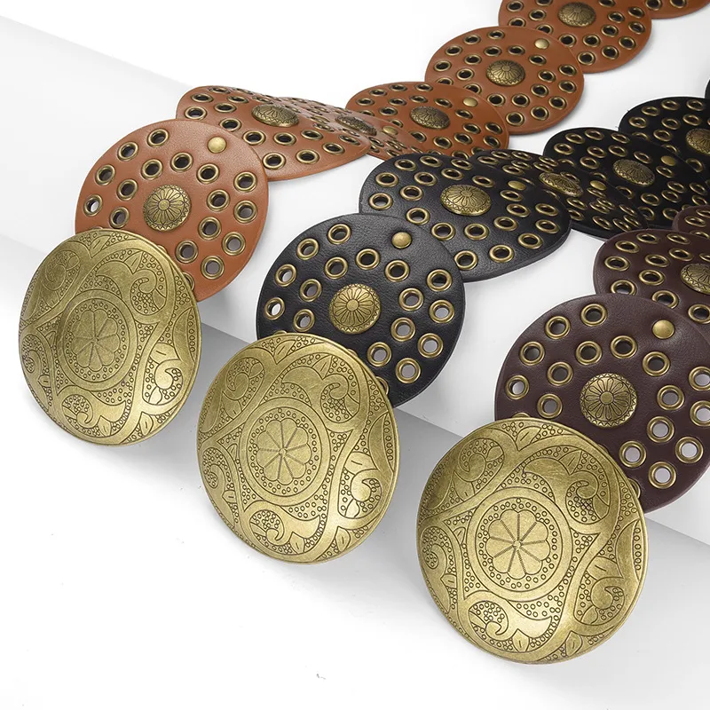 Wholesale Retro Exaggerated Round Flower Pu Leather Alloy Women's Leather Belts
