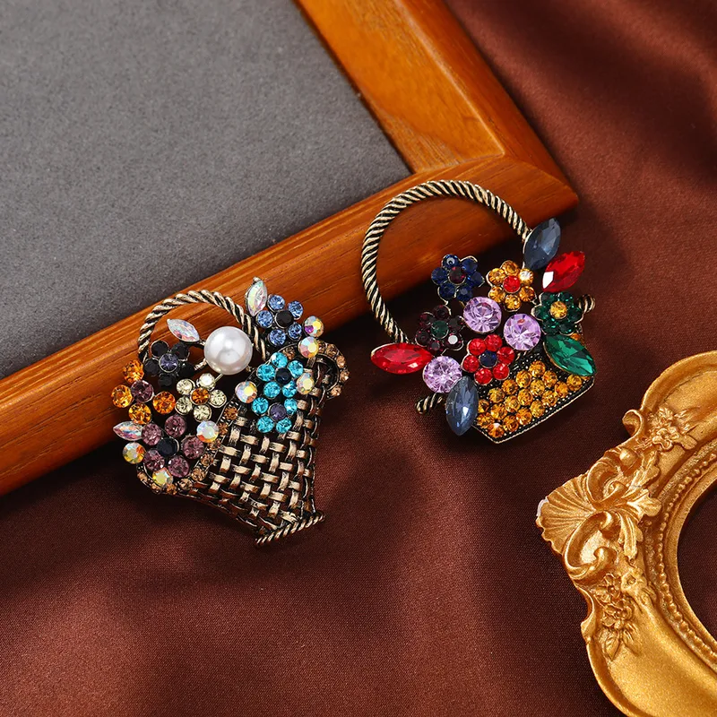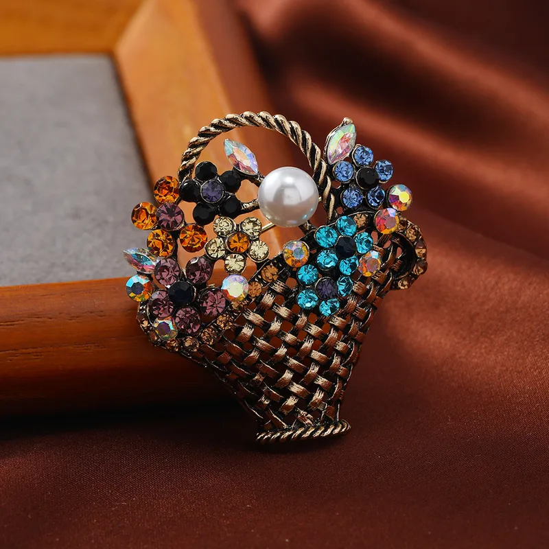Wholesale retro flower alloy inlay artificial crystal artificial pearls women's brooches
