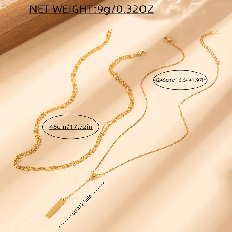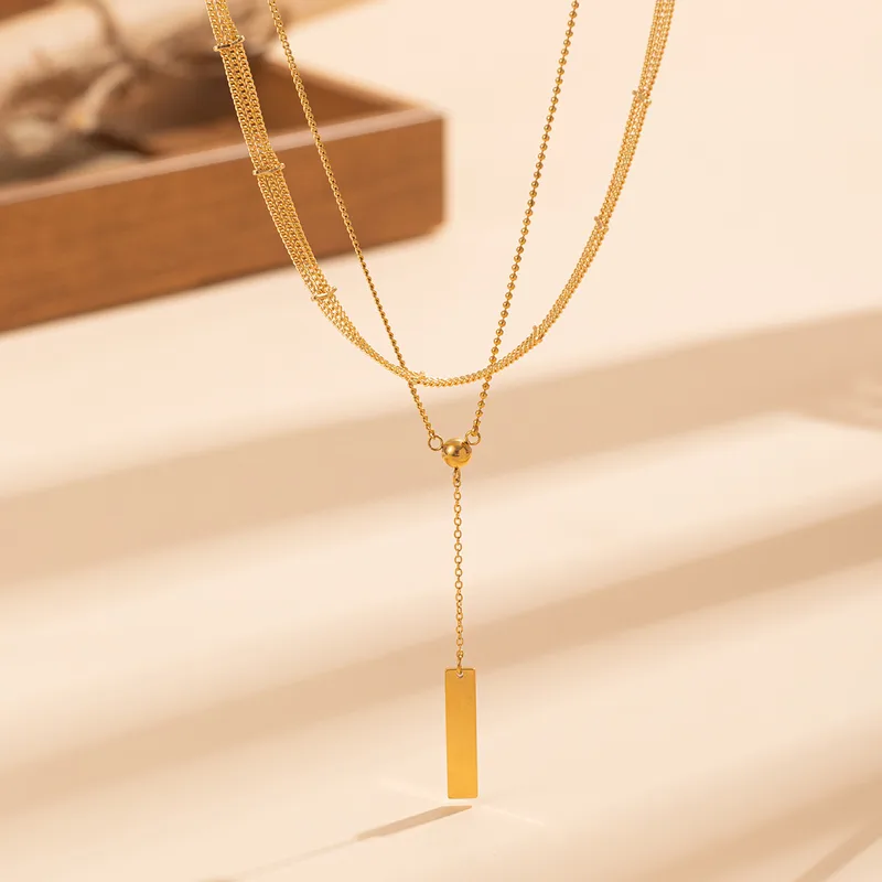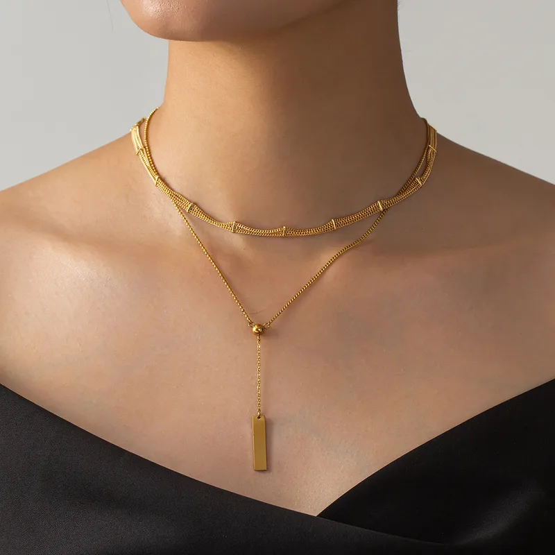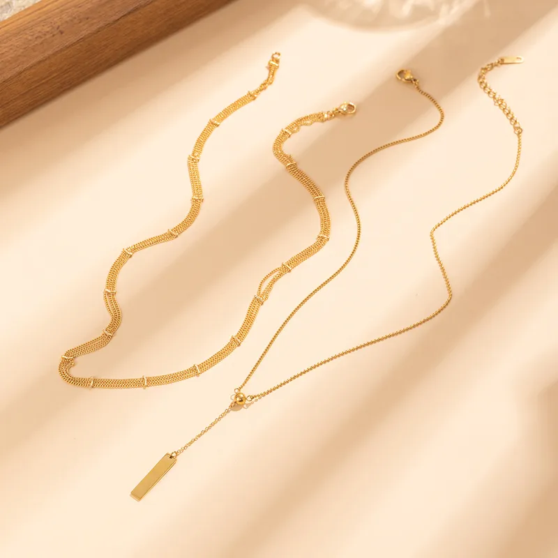 Wholesale Retro French Style Simple Style Rectangle 201 Stainless Steel Iron Wholesale Double Layer Necklaces