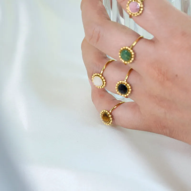 Wholesale Retro Geometric Titanium Steel Natural Stone Open Rings In Bulk