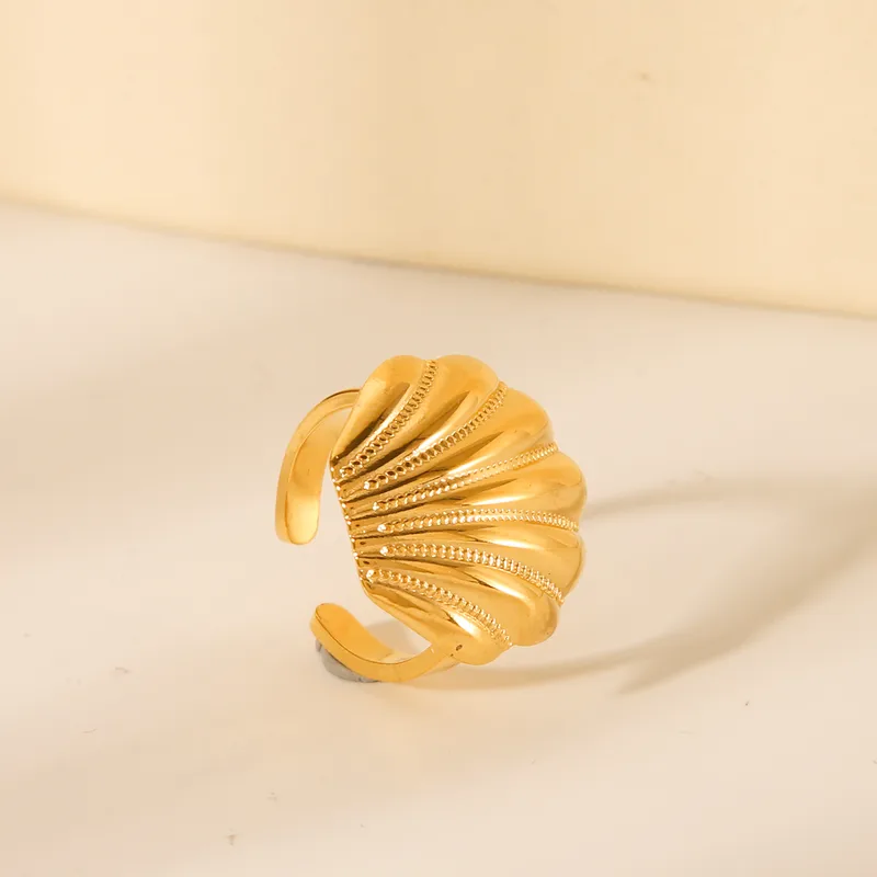 Retro Hawaiian Classic Style Scallop Shell 304 Stainless Steel Titanium Steel 18K Gold Plated Women's Open Rings