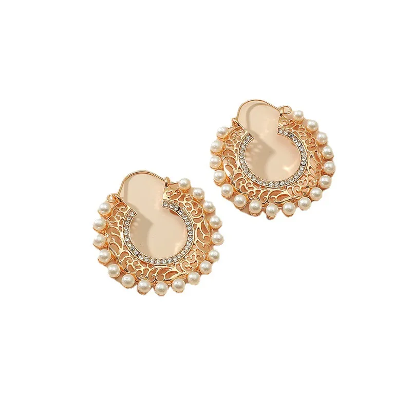 Wholesale retro palace style carved pearl earrings nhkq319966