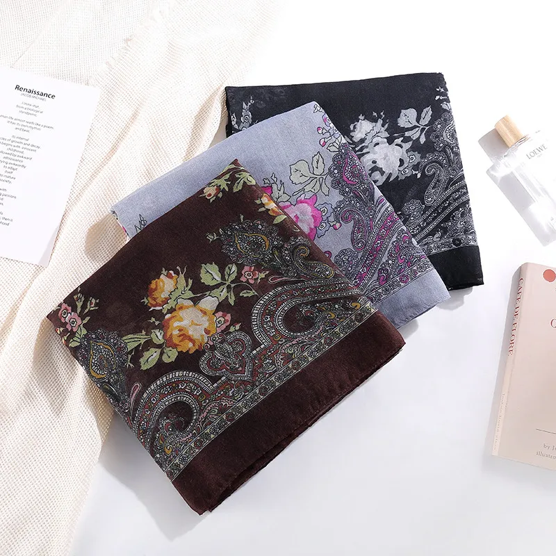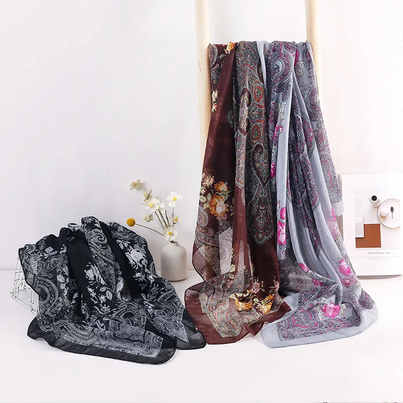 Wholesale Retro Style Bali Yarn Cashew Flower Large Square Scarf Ins Design Sense Good Sunscreen Silk Scarf Travel Shawl Tide