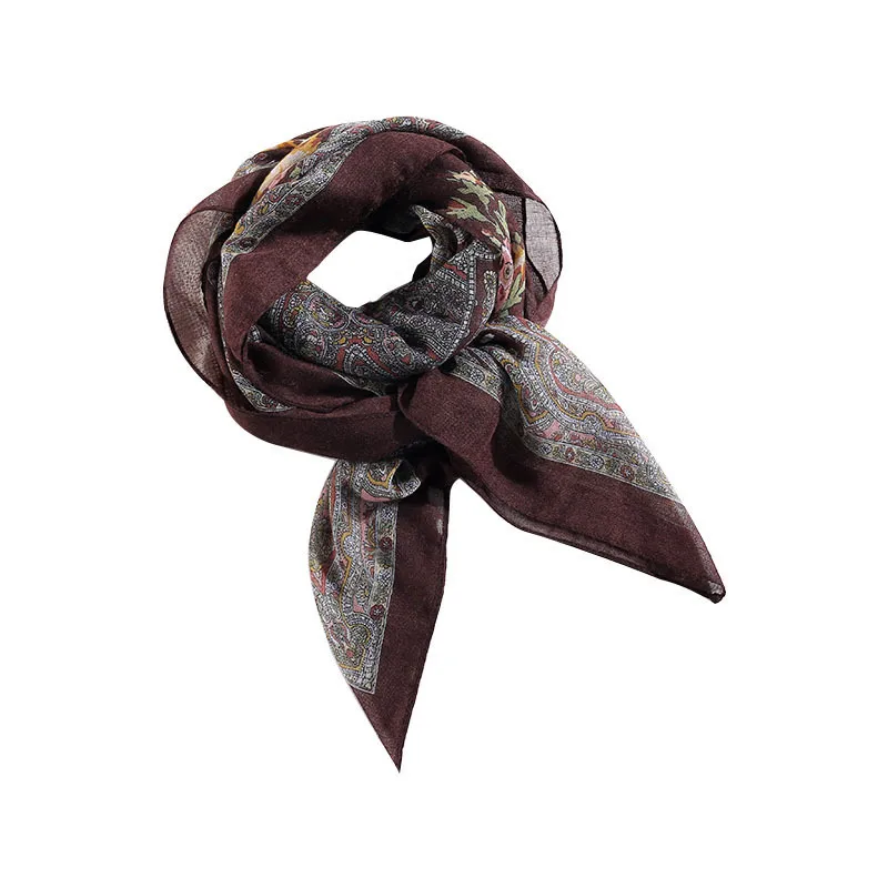 Retro Style Bali Yarn Cashew Flower Large Square Scarf Ins Design Sense Good Sunscreen Silk Scarf Travel Shawl Tide