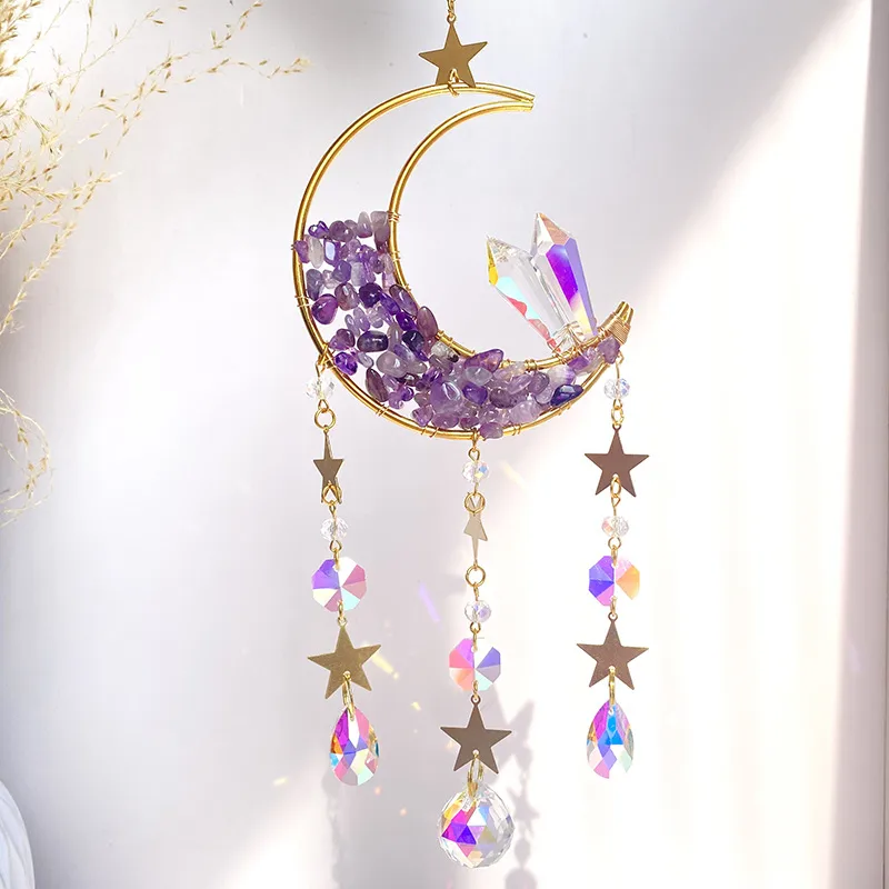 Romantic Moon Natural Crystal Gravel Dreamcatcher Wall Art