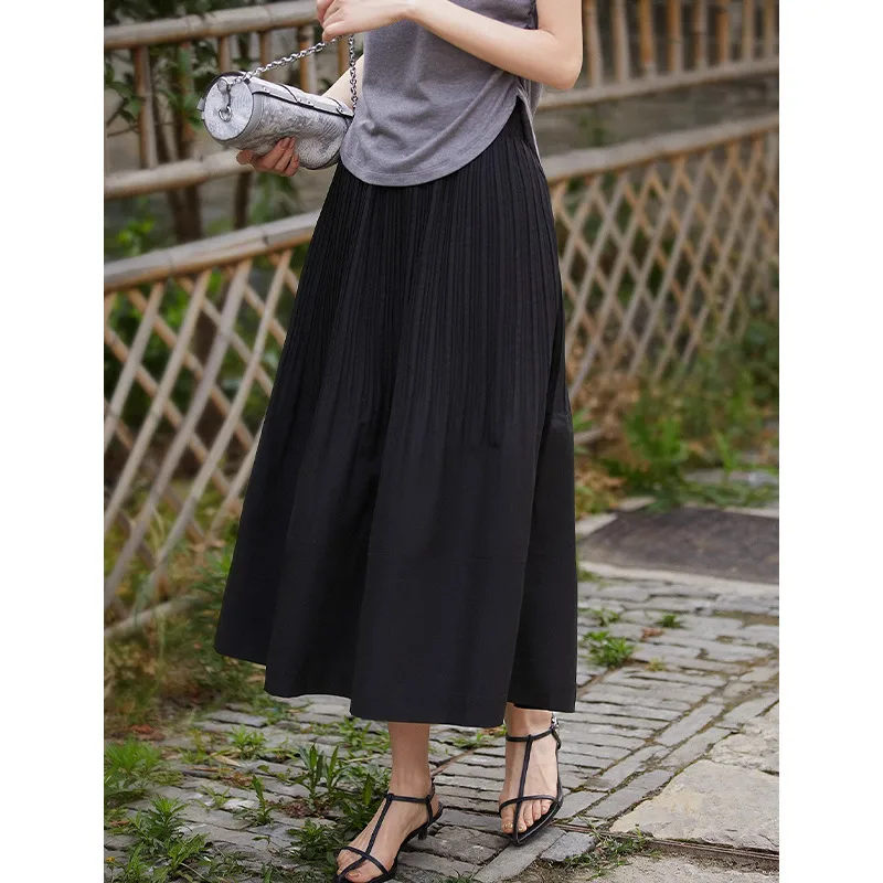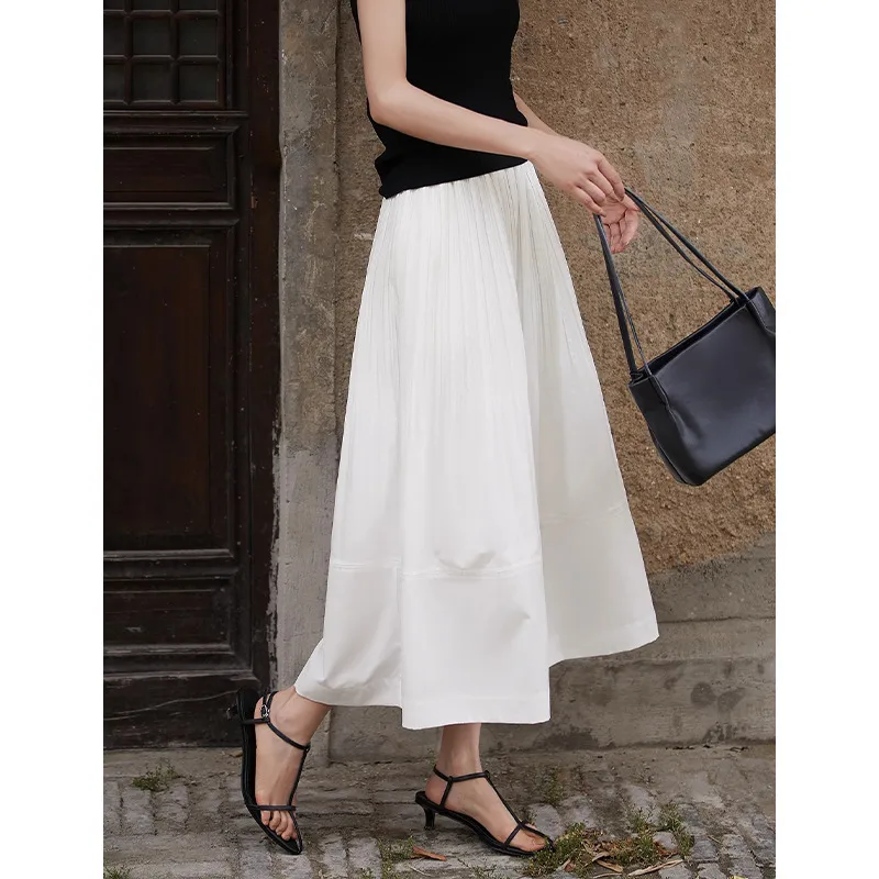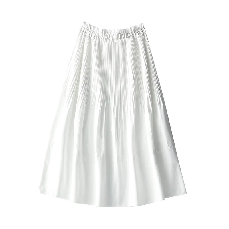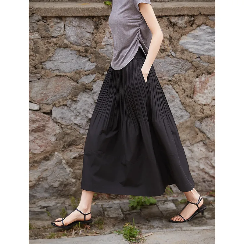 Rongtai Heavy Industry Gradient Organ Pleat Texture Wood-ear Edge Loosening Waist A- Shape Skirt Women's Spring And Summer New