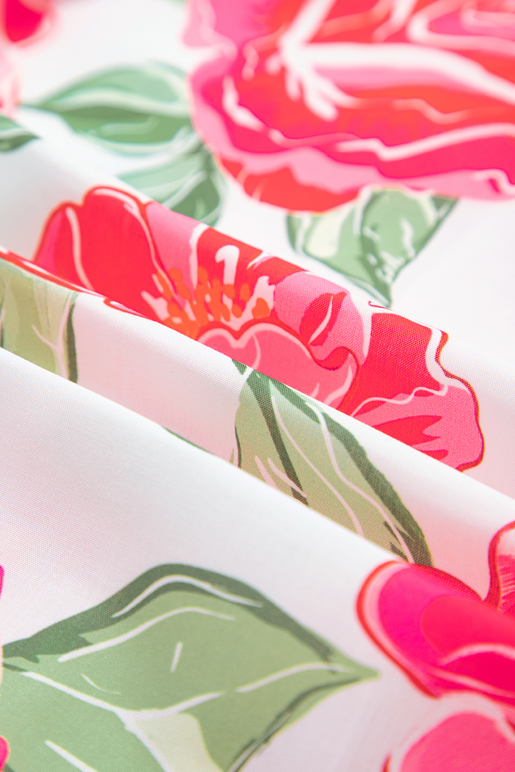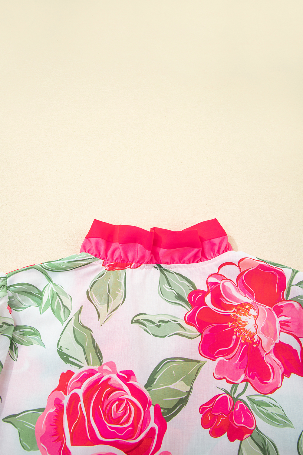 Rose Floral Frilled V Neck Short Sleeve Blouse Top