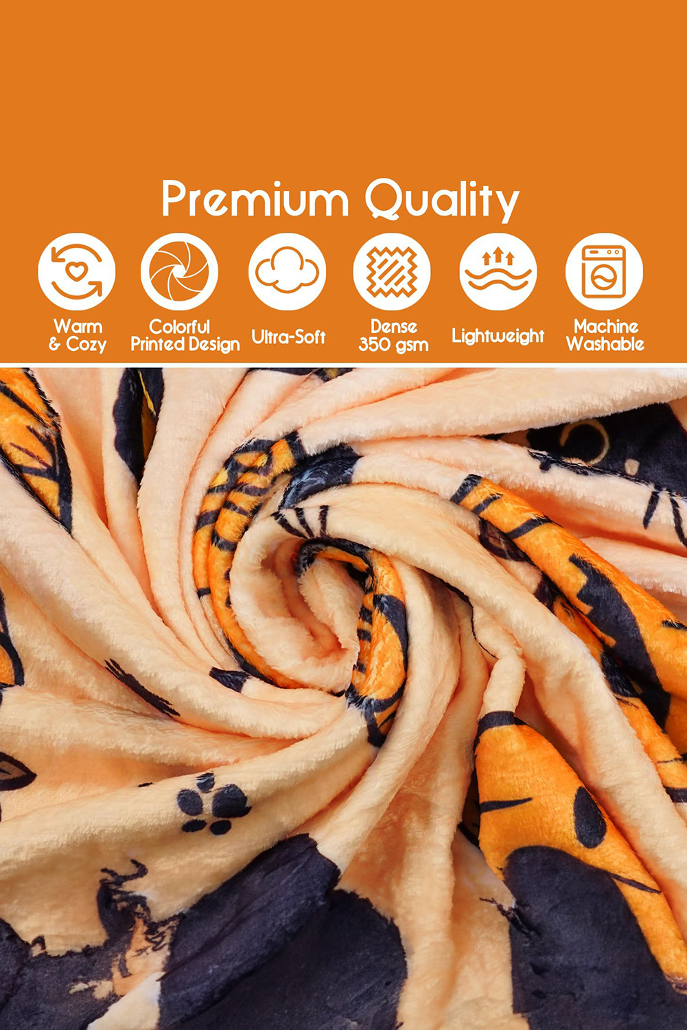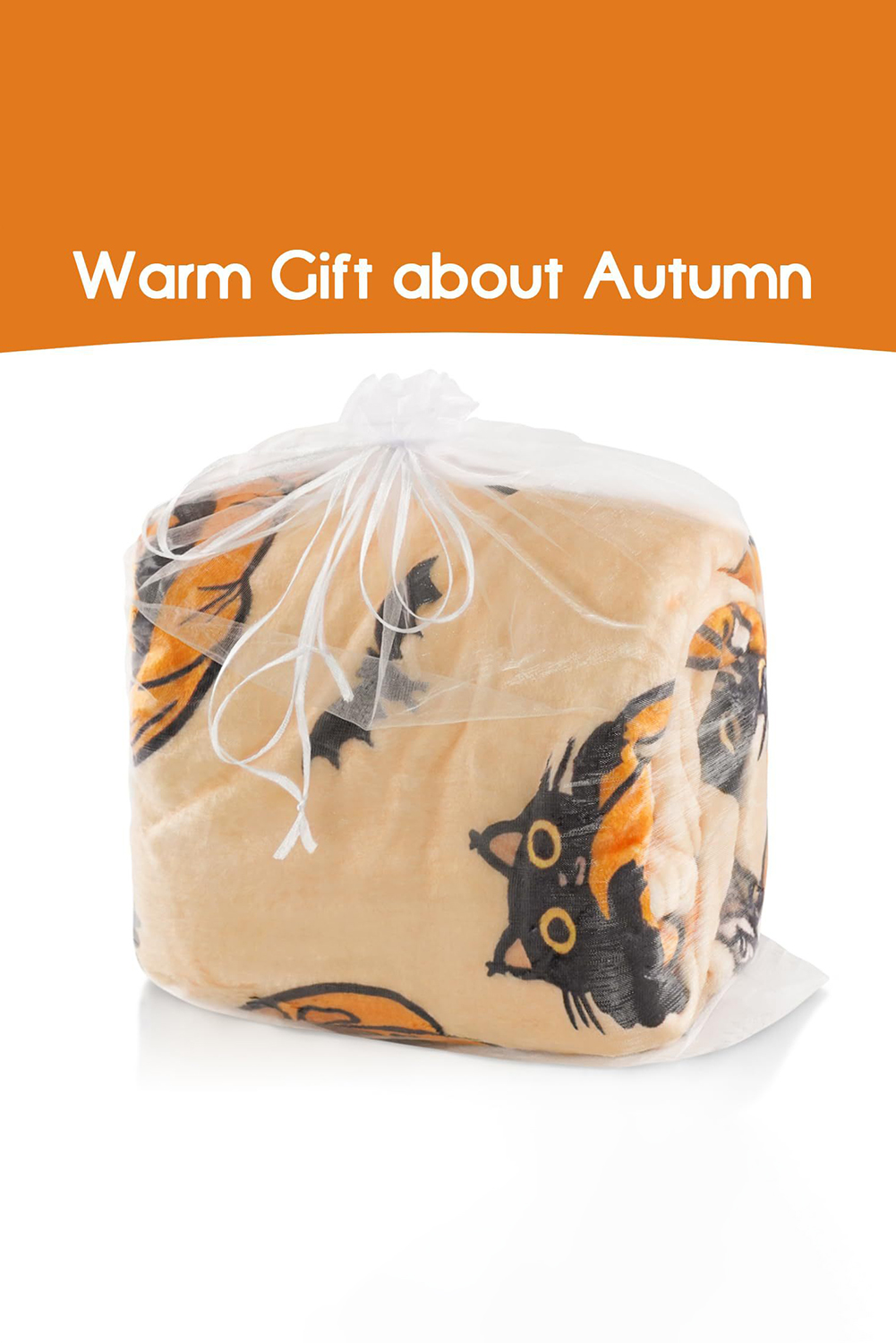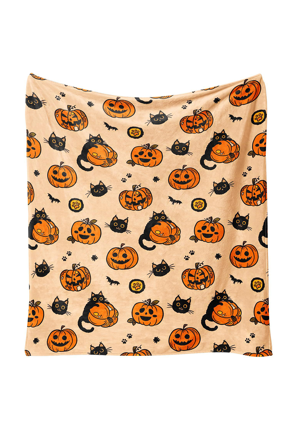 Russet Orange Halloween Pumpkin Cat Printed Fleece Blanket