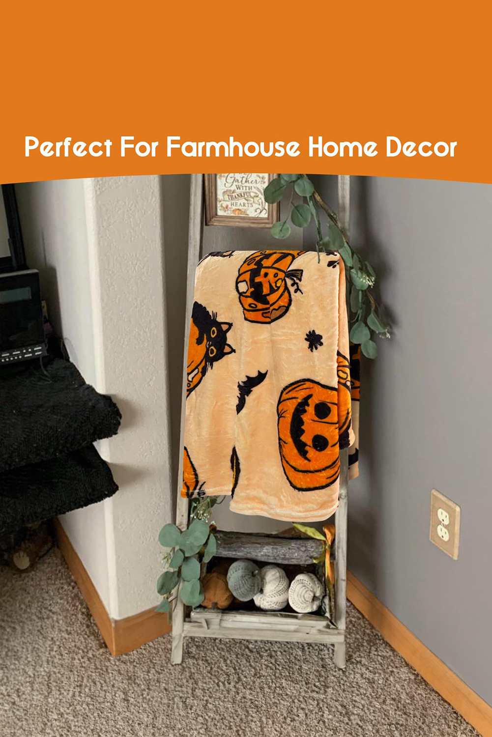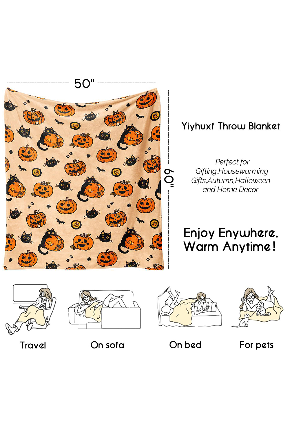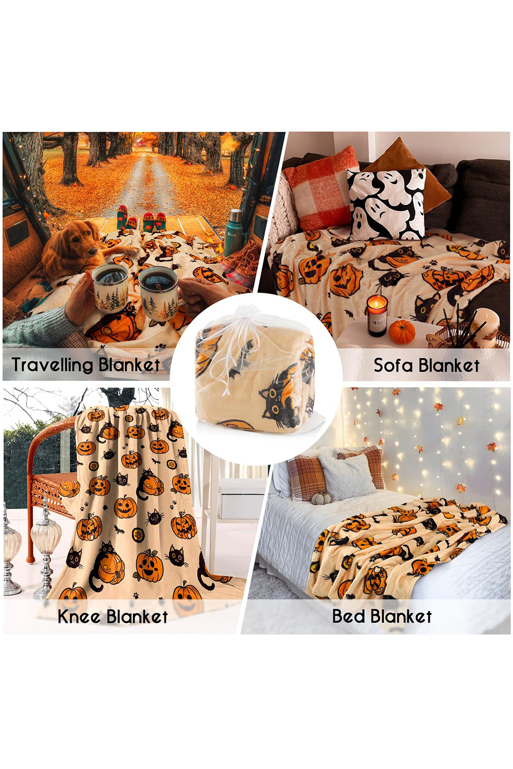 Russet Orange Halloween Pumpkin Cat Printed Fleece Blanket