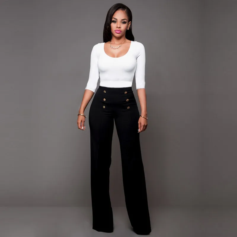 Wholesale S-0 Women's Fashion Slim-fit Personality Double-breasted Horn Trousers Available in Five Colors