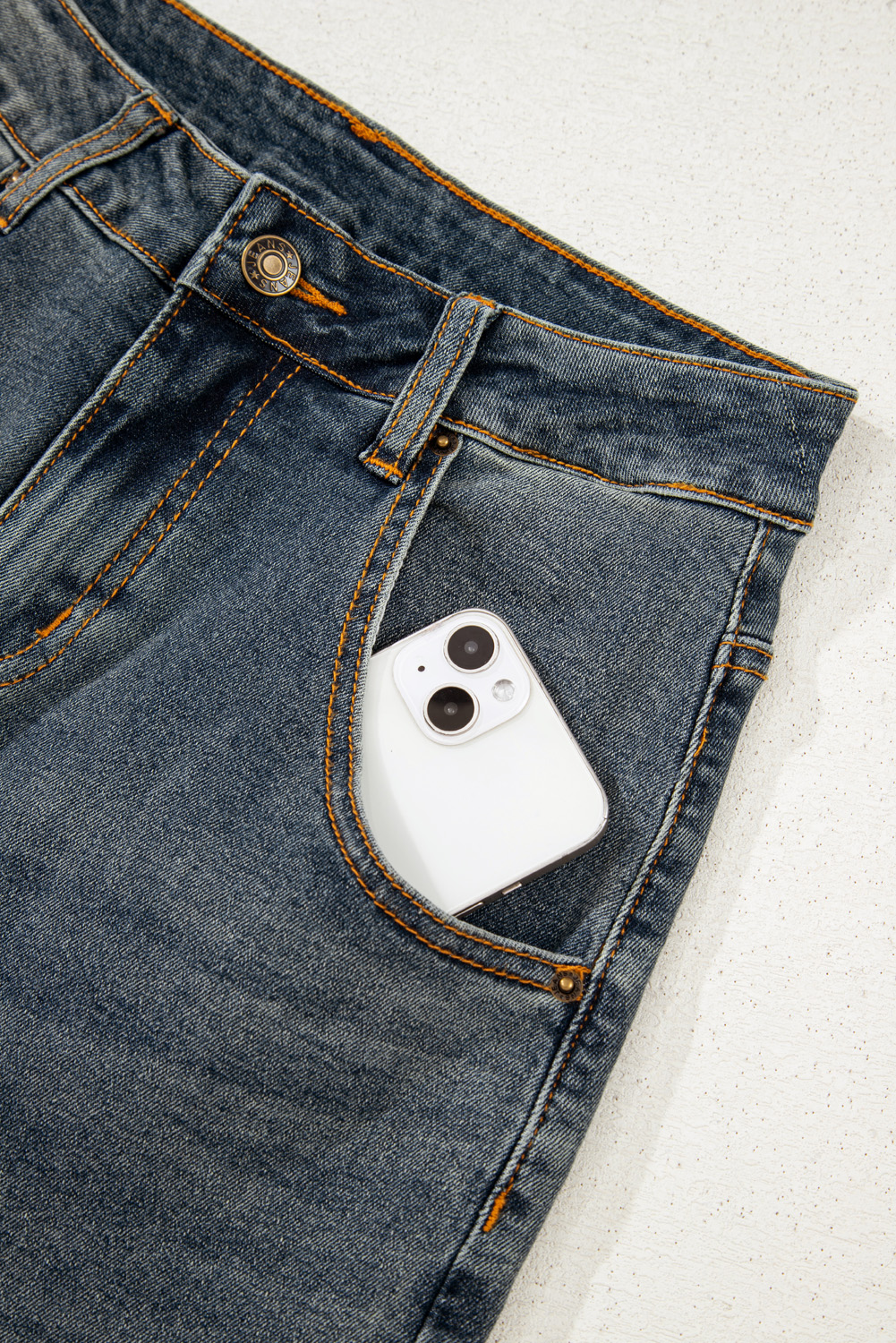 Sail Blue Exposed Stitching Loose Straight High Waist Jeans