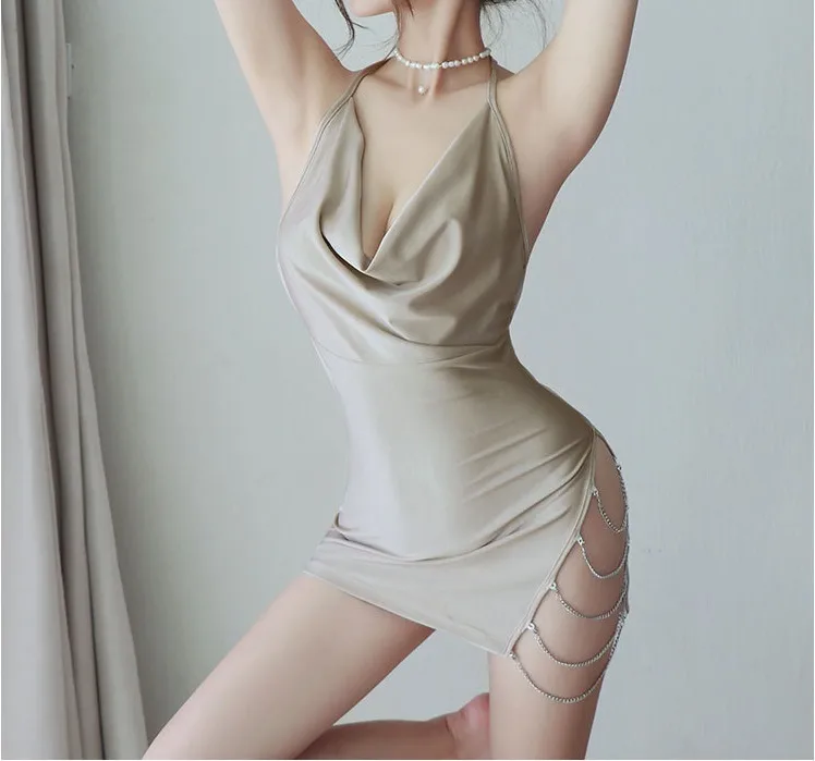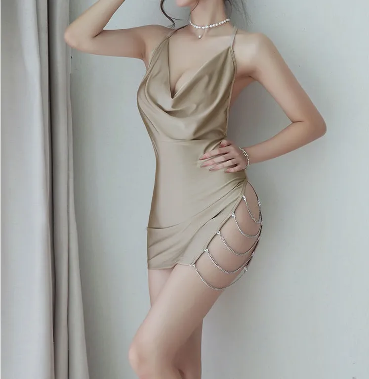 Sexy Lingerie Women's Lace Sling Women's Solid Color Chain Nightdress Homewear