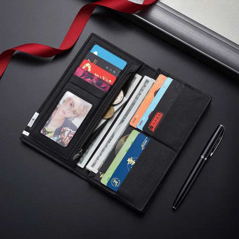 Wholesale SHABILI new ultra-thin men's wallet long oil wax leather business wallet creative card bag manufacturers wholesale