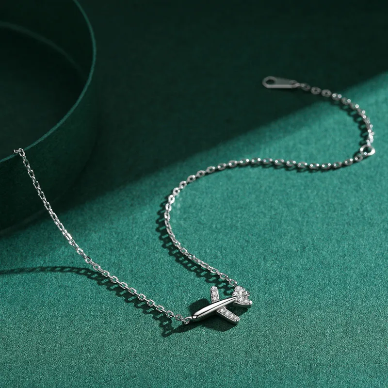 Shiny Airplane Sterling Silver Plating Inlay Zircon Rhodium Plated Bracelets