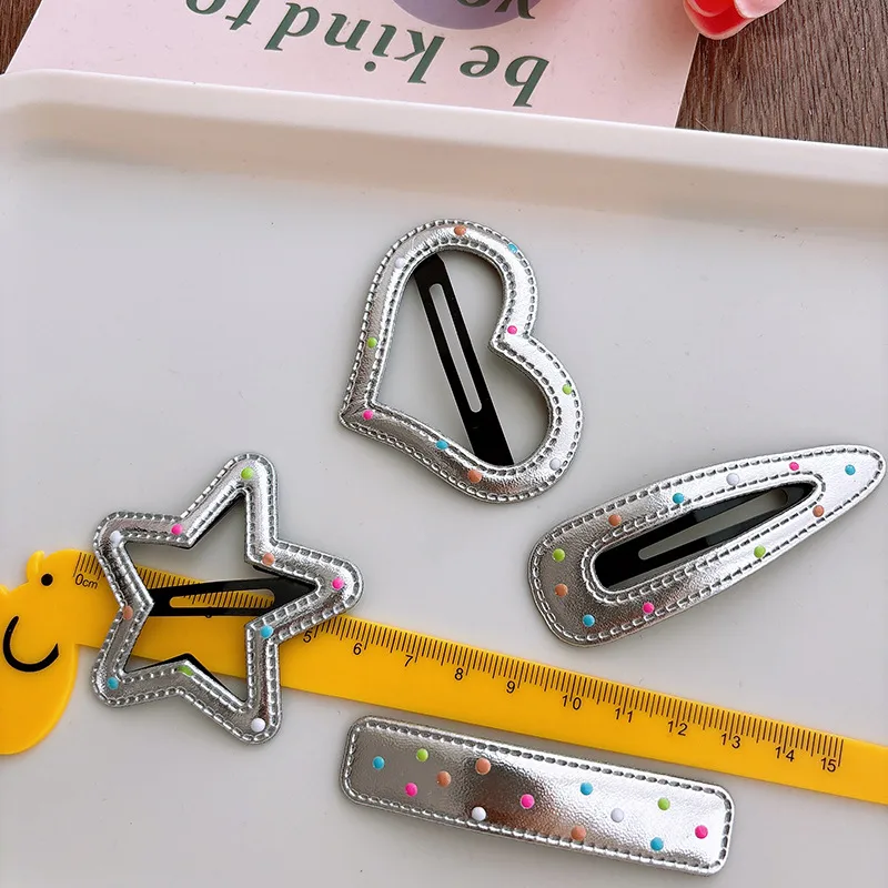 Silver Leather Hollow Out Versatile Basic Dots Children Fringe Hairpin Girls Break Clip Girl Broken Hairpin