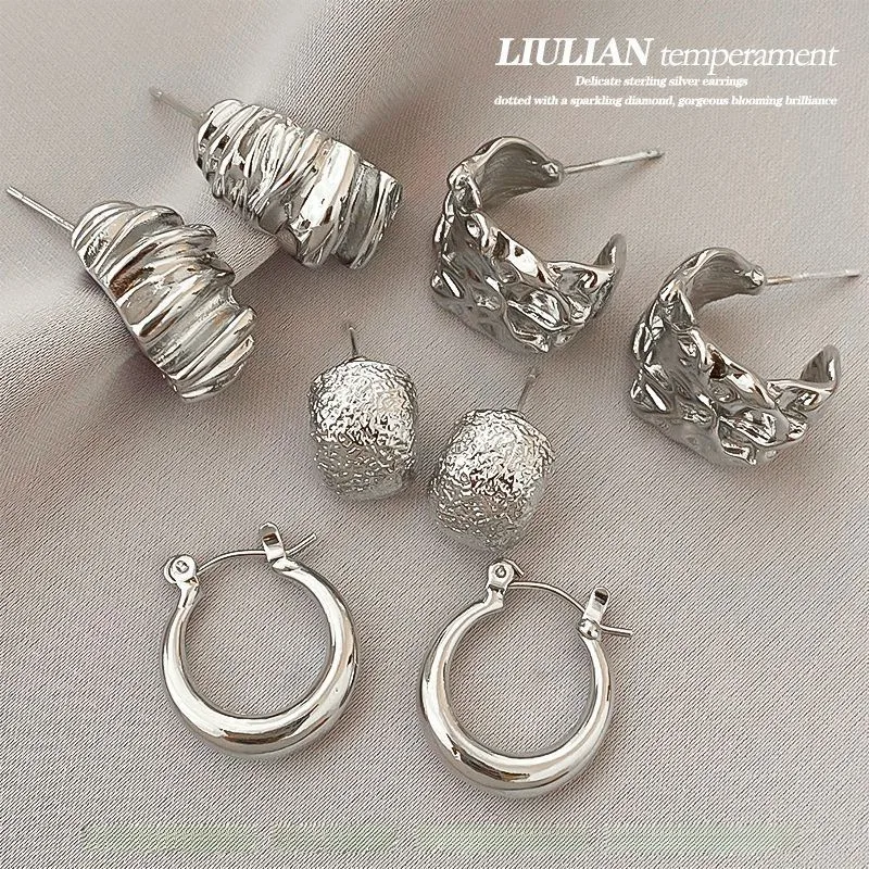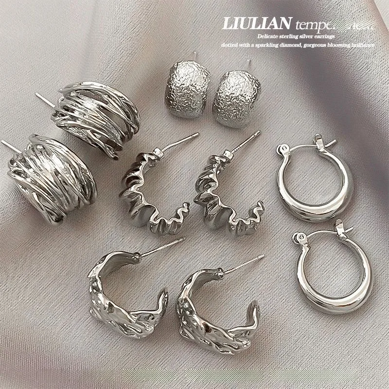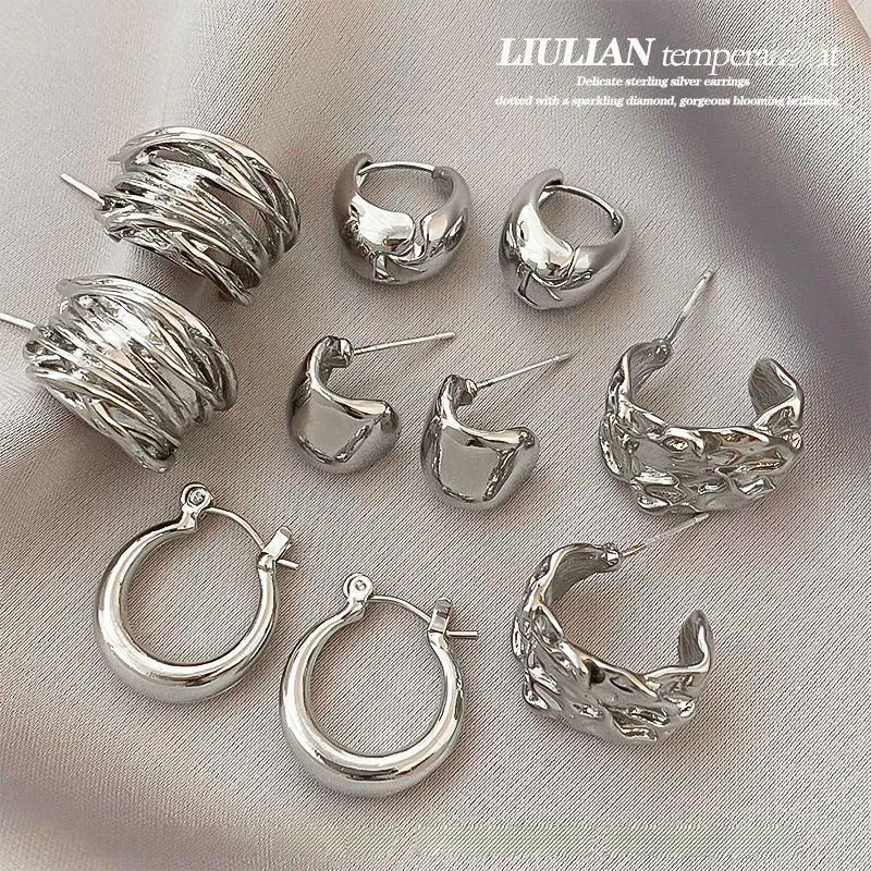 Wholesale silver Simple Elegant Earrings for Women New Fashionable High-end Earrings Niche Retro Internet Celebrity Earrings