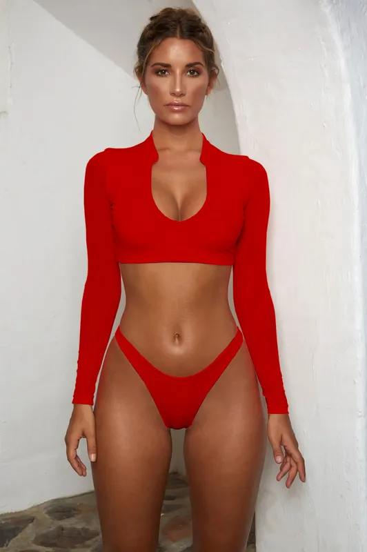 Wholesale simple long-sleeved mesh bikini one-piece swimsuit