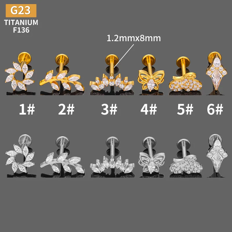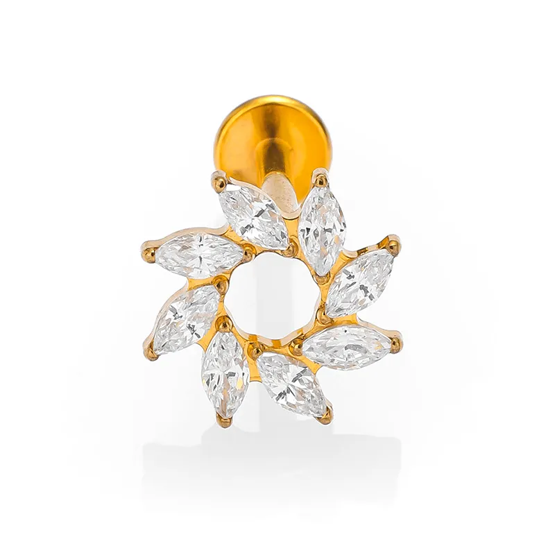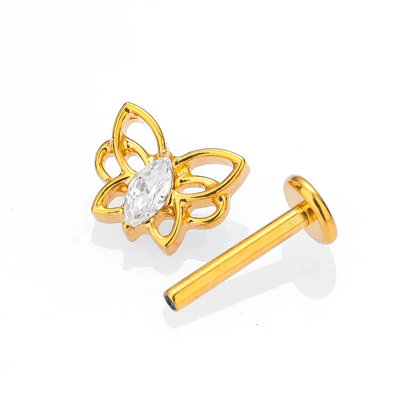 Wholesale Simple Style Animal Leaves Crown Titanium Alloy Plating Zircon 14K Gold Plated Women's lip stud