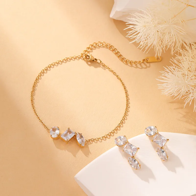 Wholesale Simple Style Classic Style Geometric 304 Stainless Steel Zircon 18K Gold Plated Women's Jewelry Set