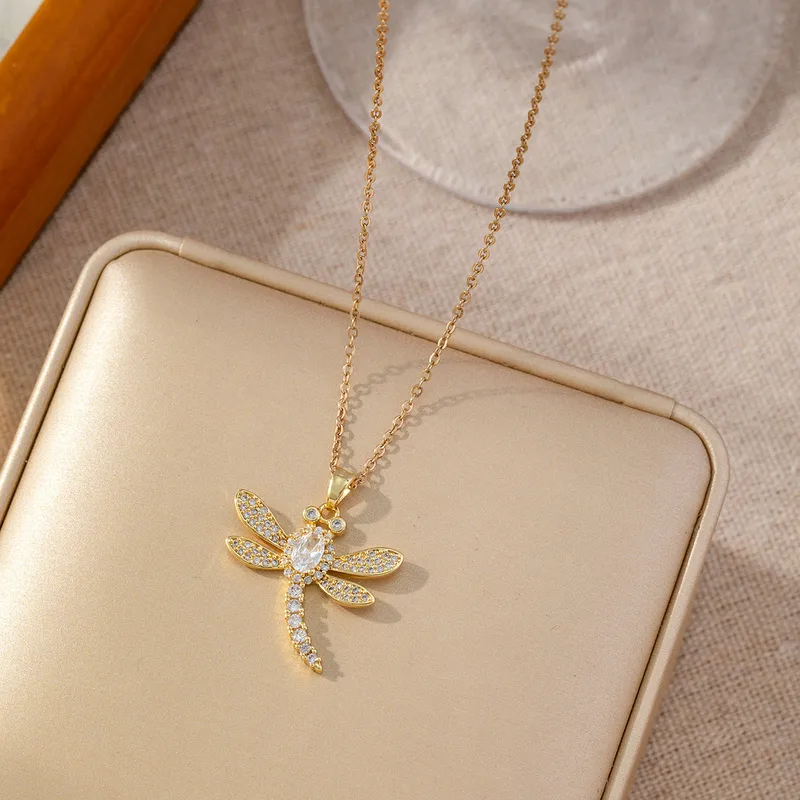 Wholesale Simple Style Dragonfly Copper Plating Women's Pendant Necklace